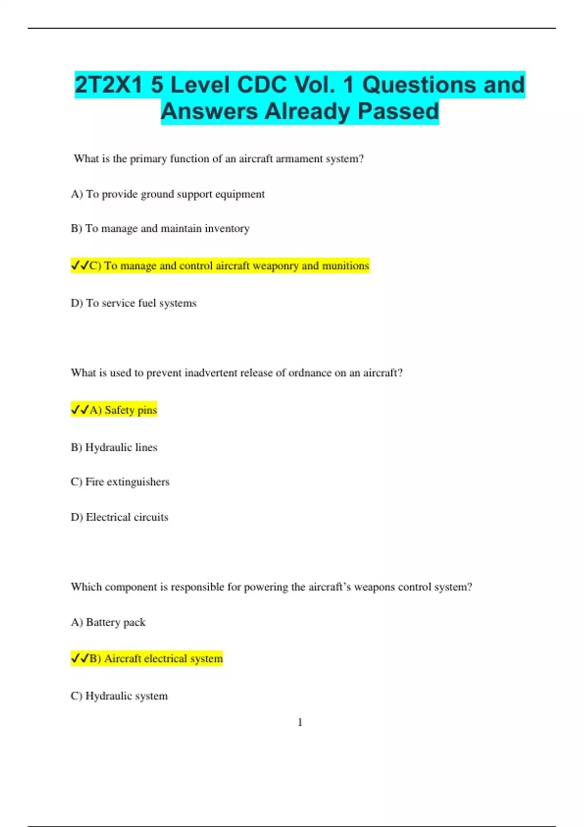 ✔✔B) Aircraft armament control system