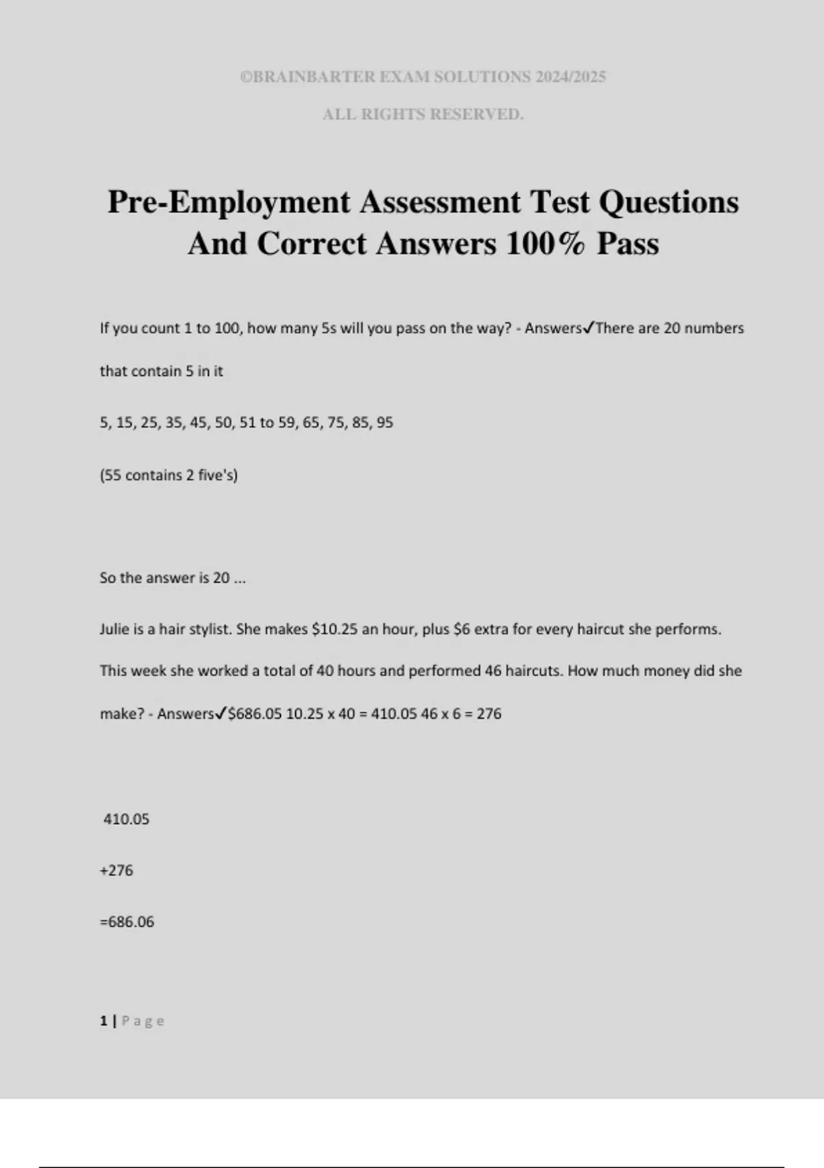 Pre-Employment Assessment Test Questions And Correct Answers 100% Pass