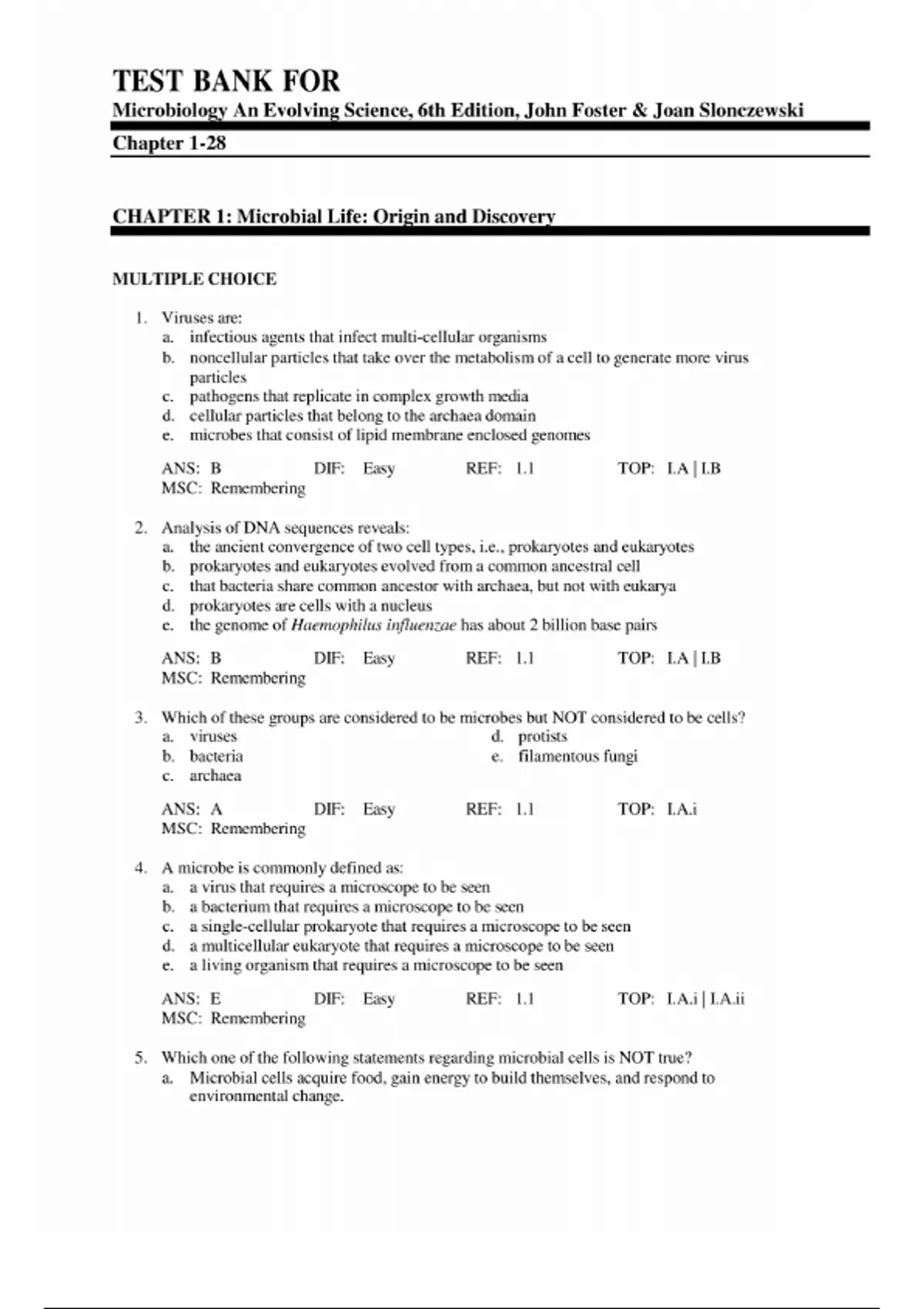TEST BANK for Microbiology: An Evolving Science