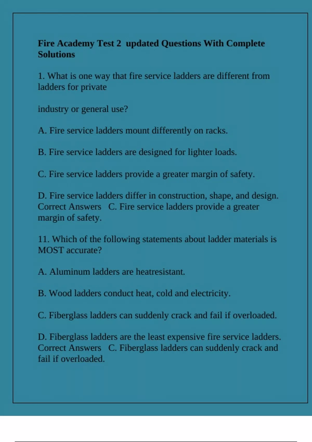 Correct Answers C. Fire service ladders provide a greater