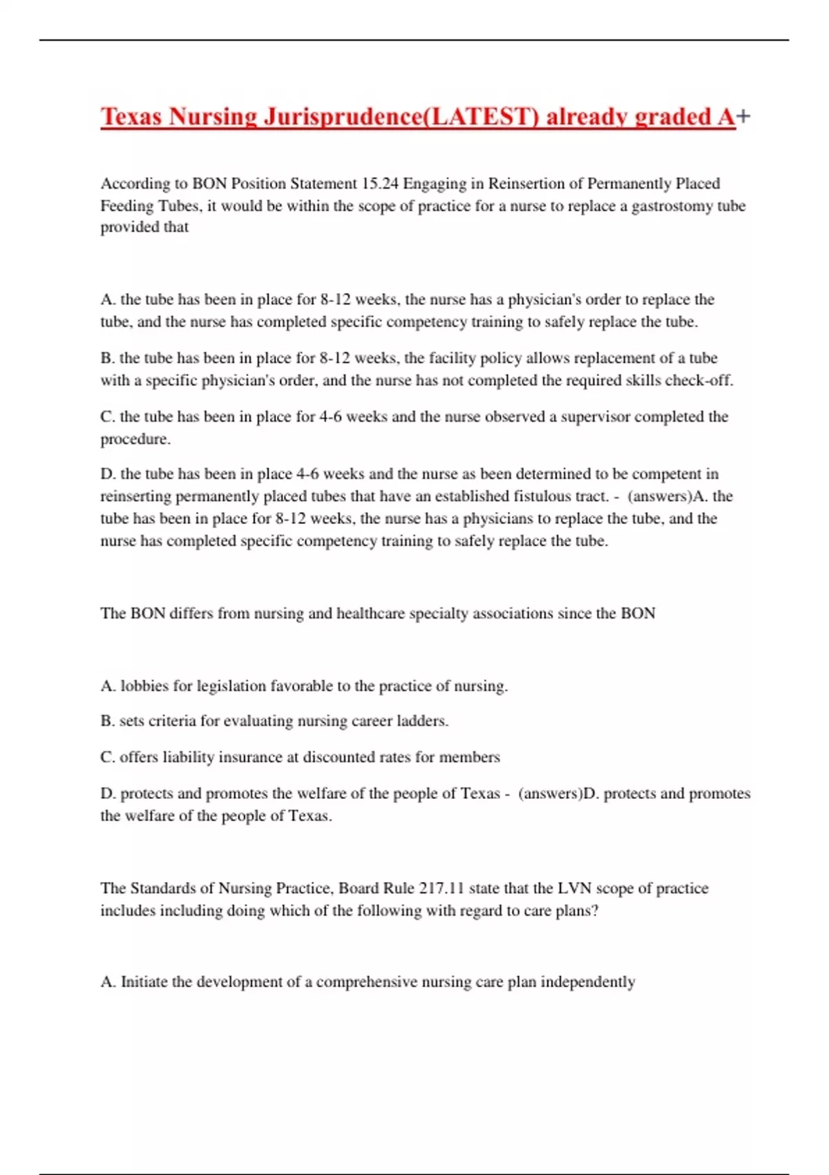 D. Review the nursing care plan only if directed to do so by the physician. - (answers)C.
