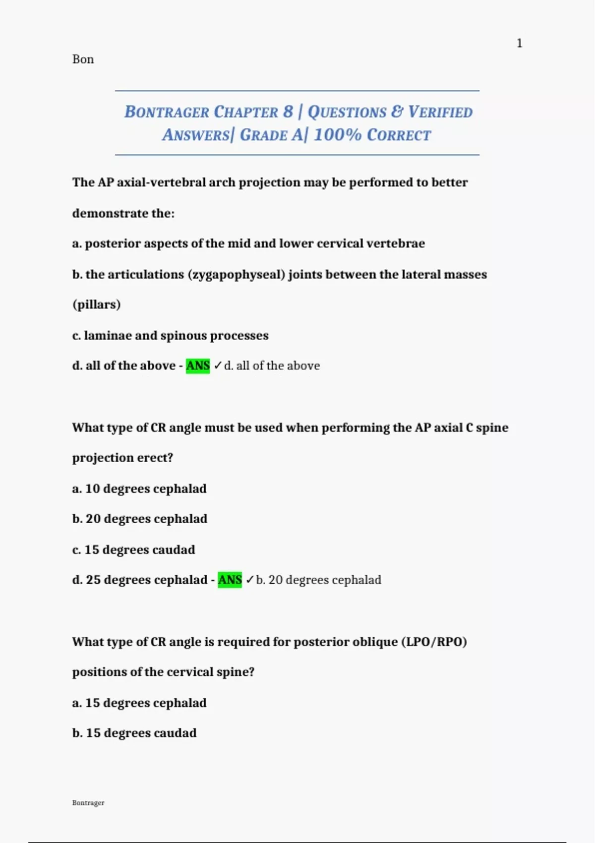 BONTRAGER CHAPTER 8 | QUESTIONS & VERIFIED ANSWERS| GRADE A| 100% CORRECT