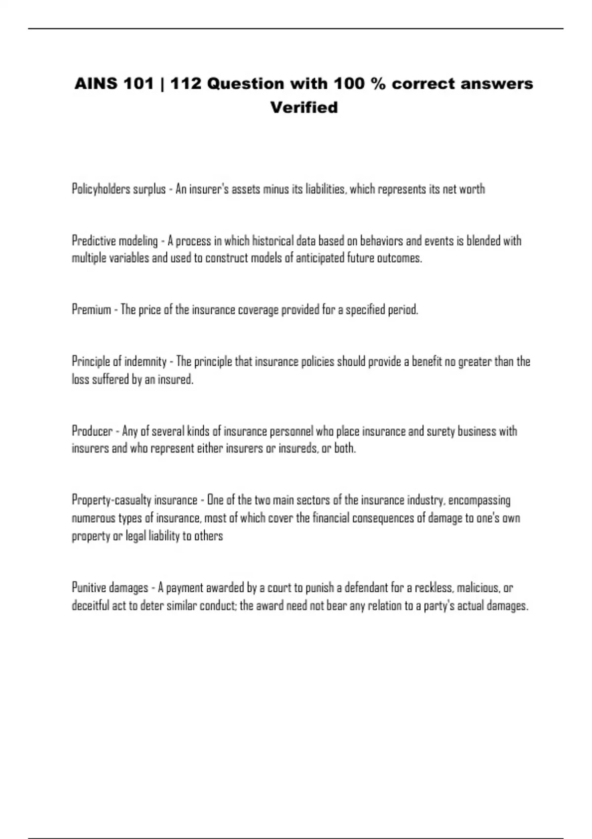AINS 101 | 112 Question with 100 % correct answers Verified
