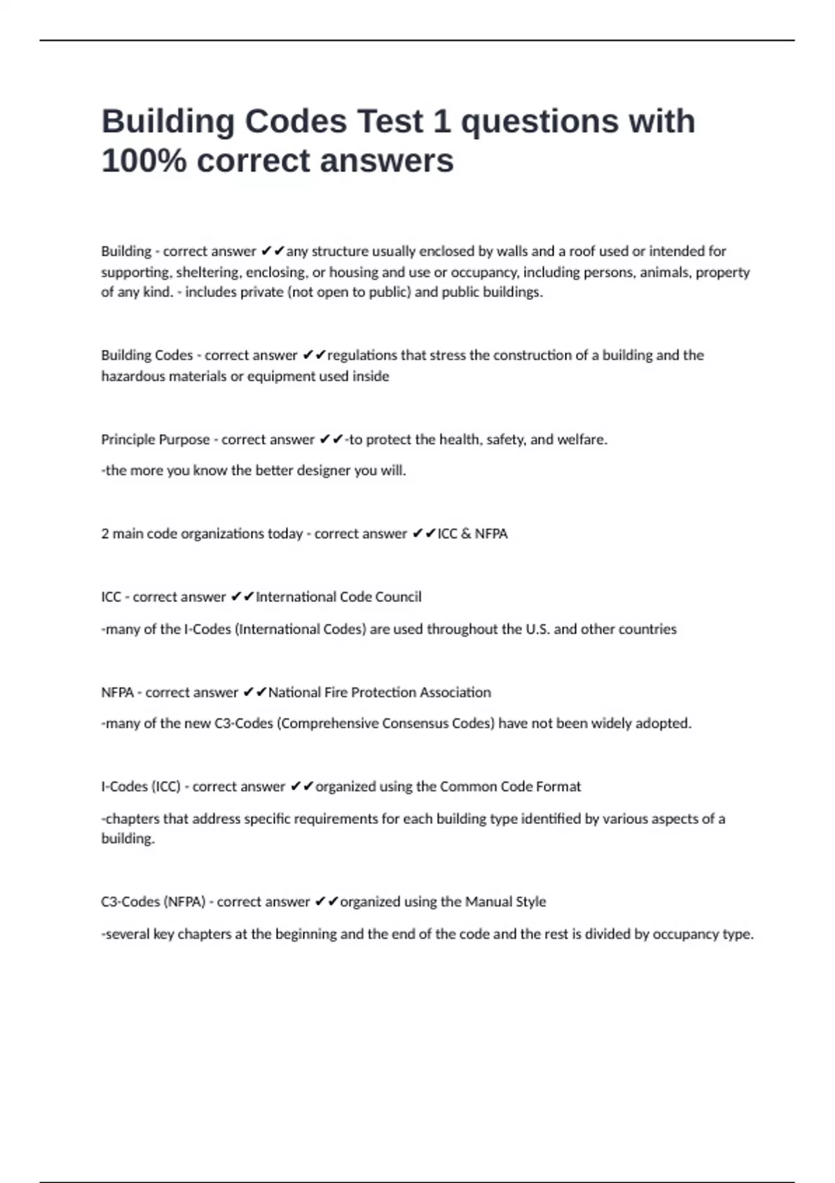 Building Codes - correct answer ✔✔regulations that stress the construction of a building and the