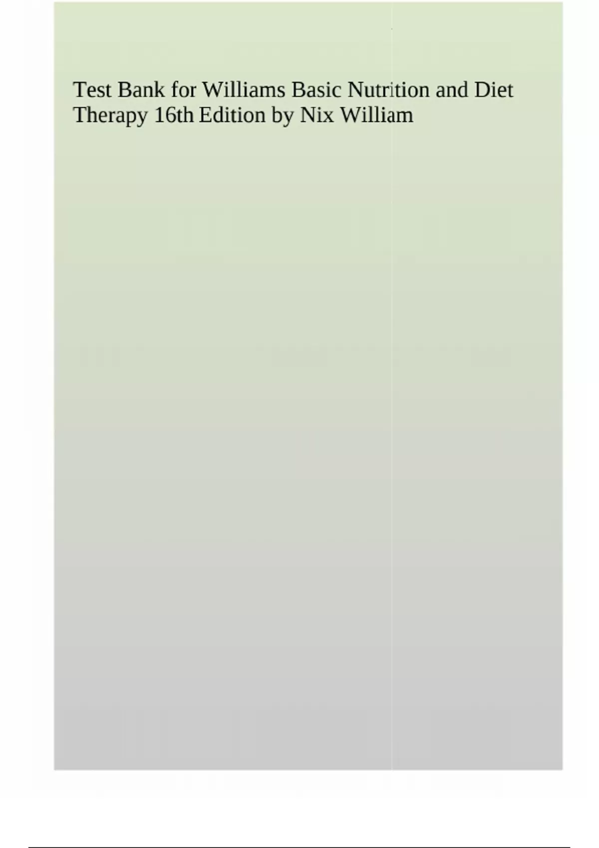 Test Bank for Williams Basic Nutrition and Diet Therapy 16 th Edition by Nix William A+ LATEST GUIDE COMPLETE CHAPTERS
