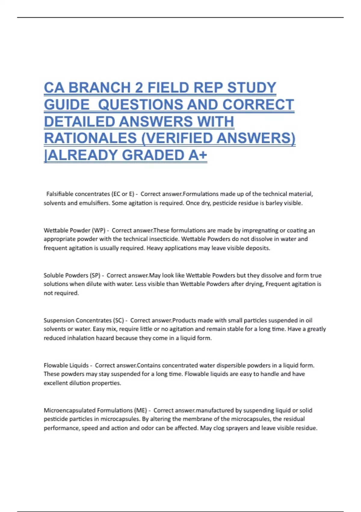 vFalsifiable concentrates (EC or E) - Correct answer.Formulations made up of the technical material,