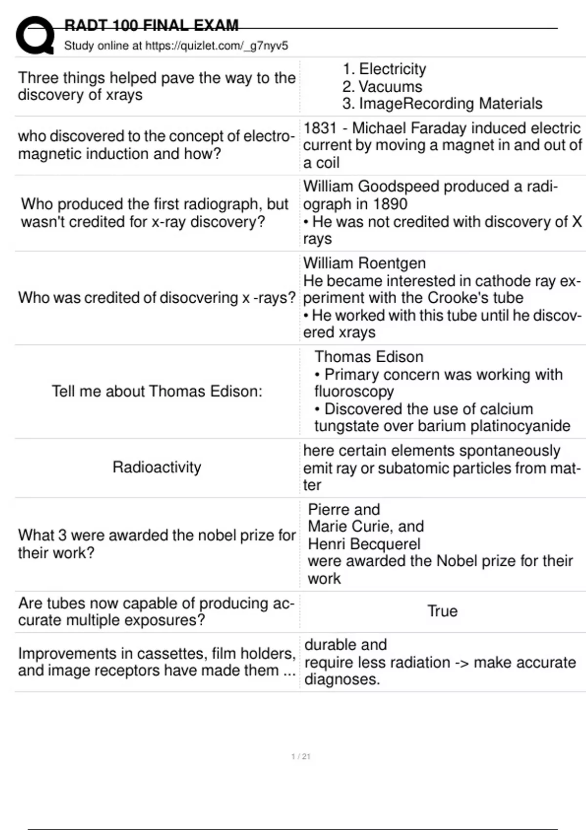 , RADT 100 FINAL EXAM