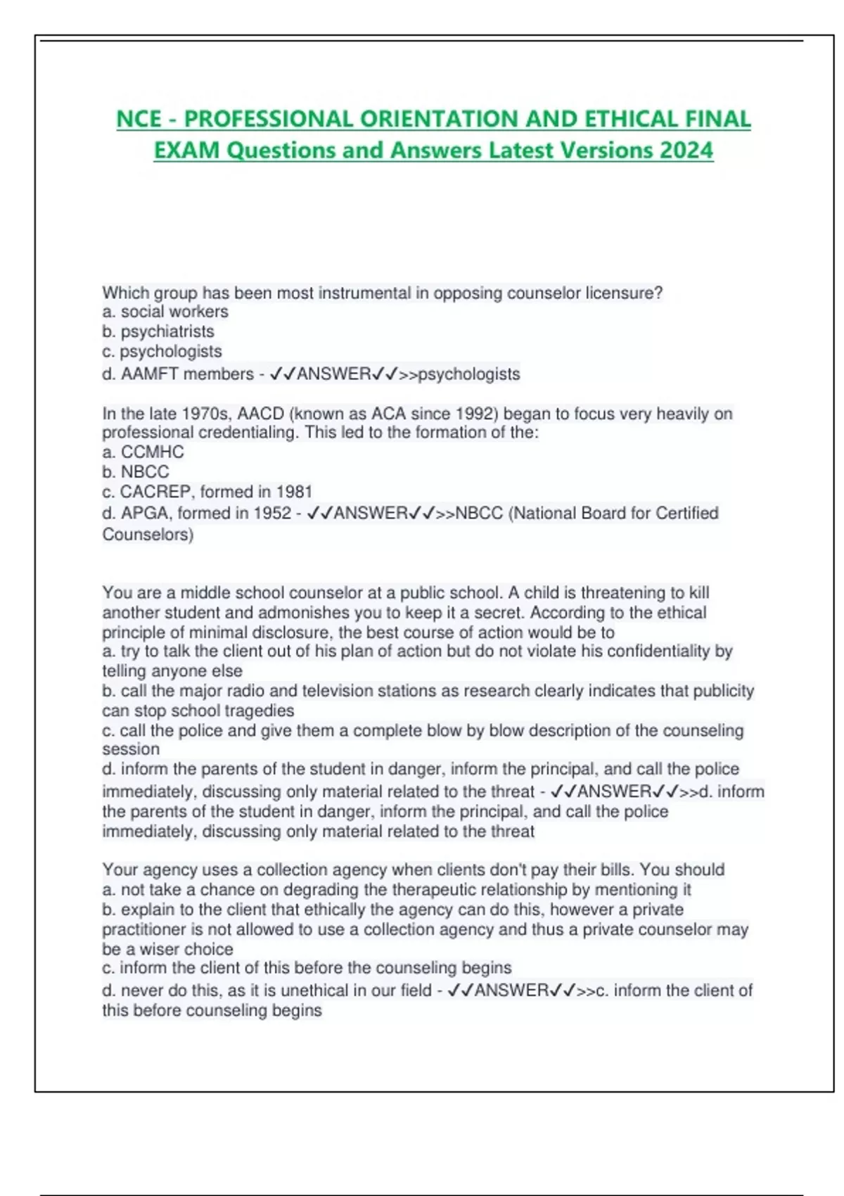 d. never do this, as it is unethical in our field - ✔✔ANSWER✔✔>>c. inform the client of