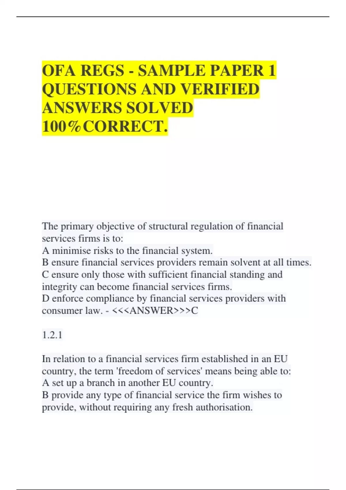 OFA REGS - SAMPLE PAPER 1