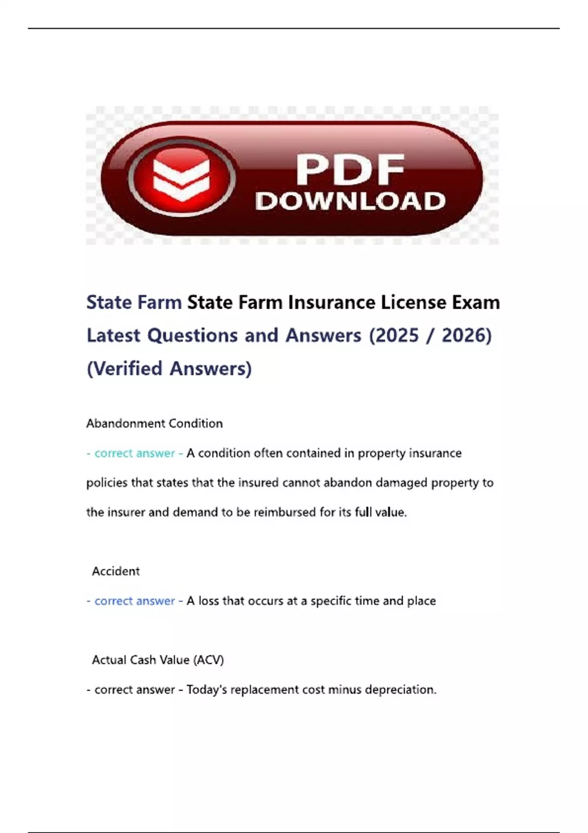 State Farm Insurance License Exam Latest Questions and Answers (2025 / 2026) (Verified Answers) State Farm Insurance License Exam Latest Questions and Answers (2025 / 2026) (Verified Answers)