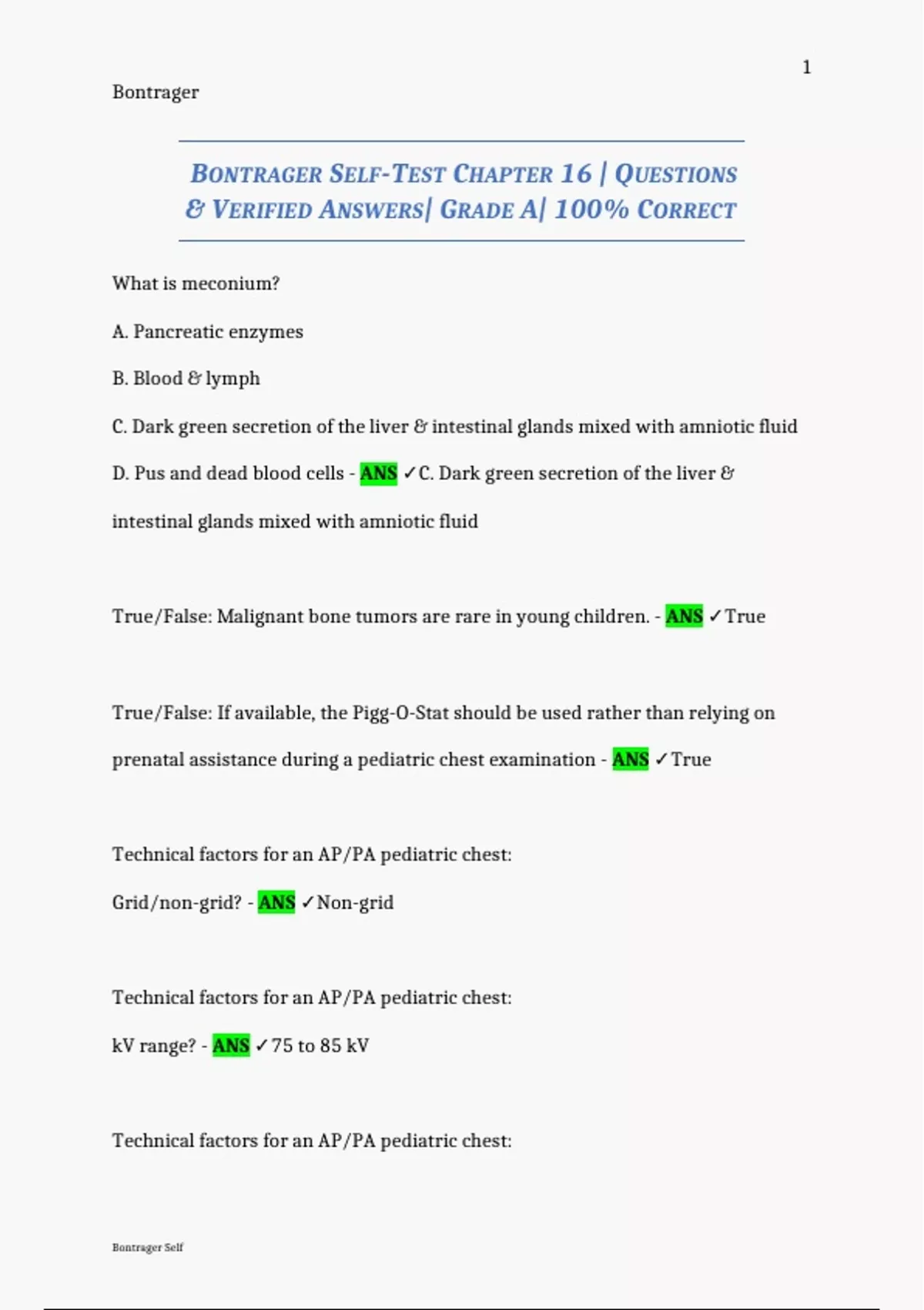 BONTRAGER SELF-TEST CHAPTER 16 | QUESTIONS