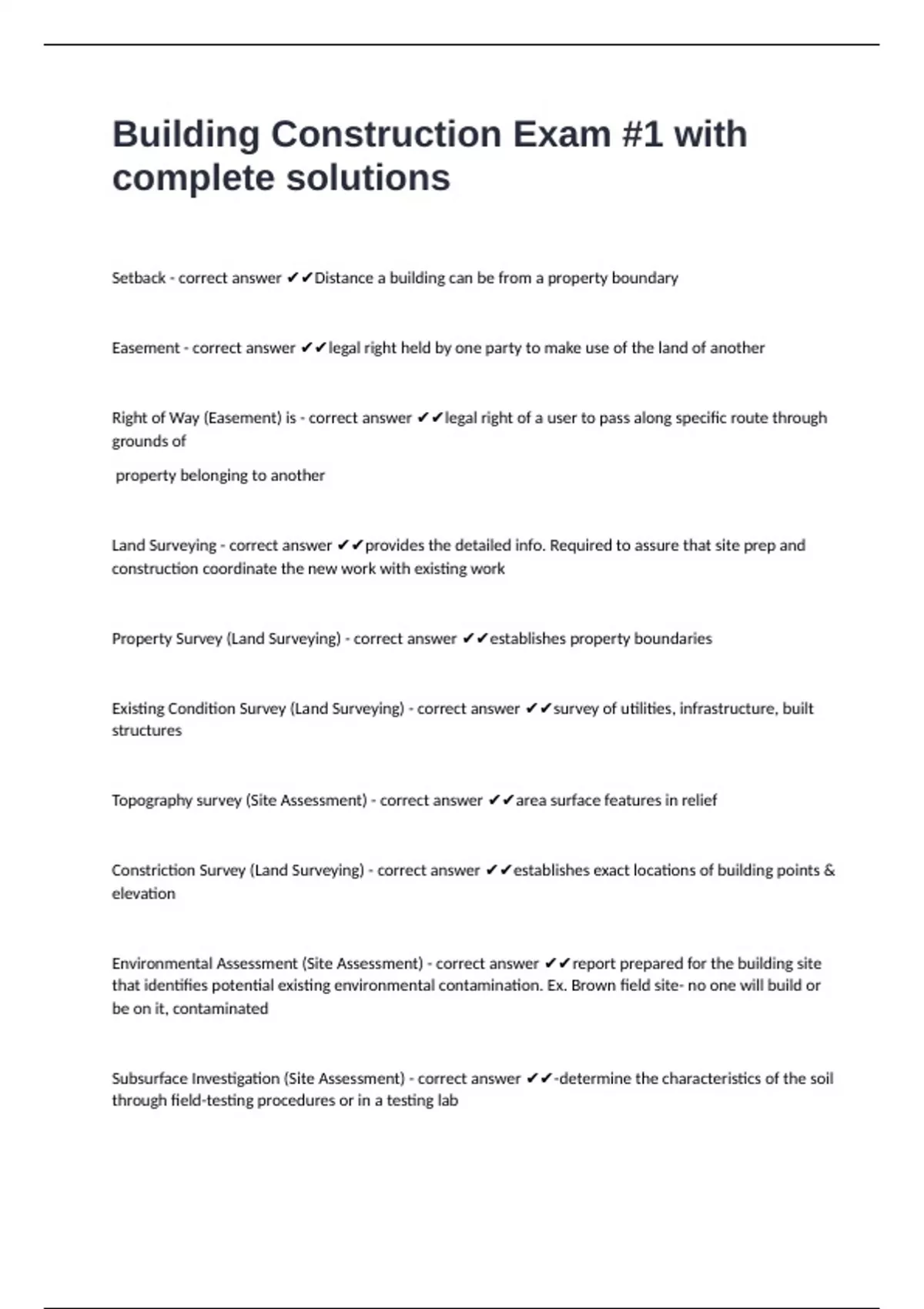 Constriction Survey (Land Surveying) - correct answer ✔✔establishes exact locations of building points &
