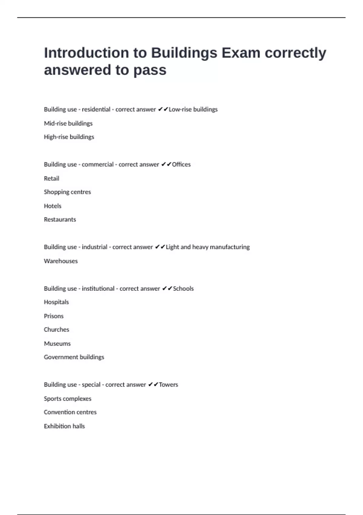 Building construction - correct answer ✔✔Schools / universities