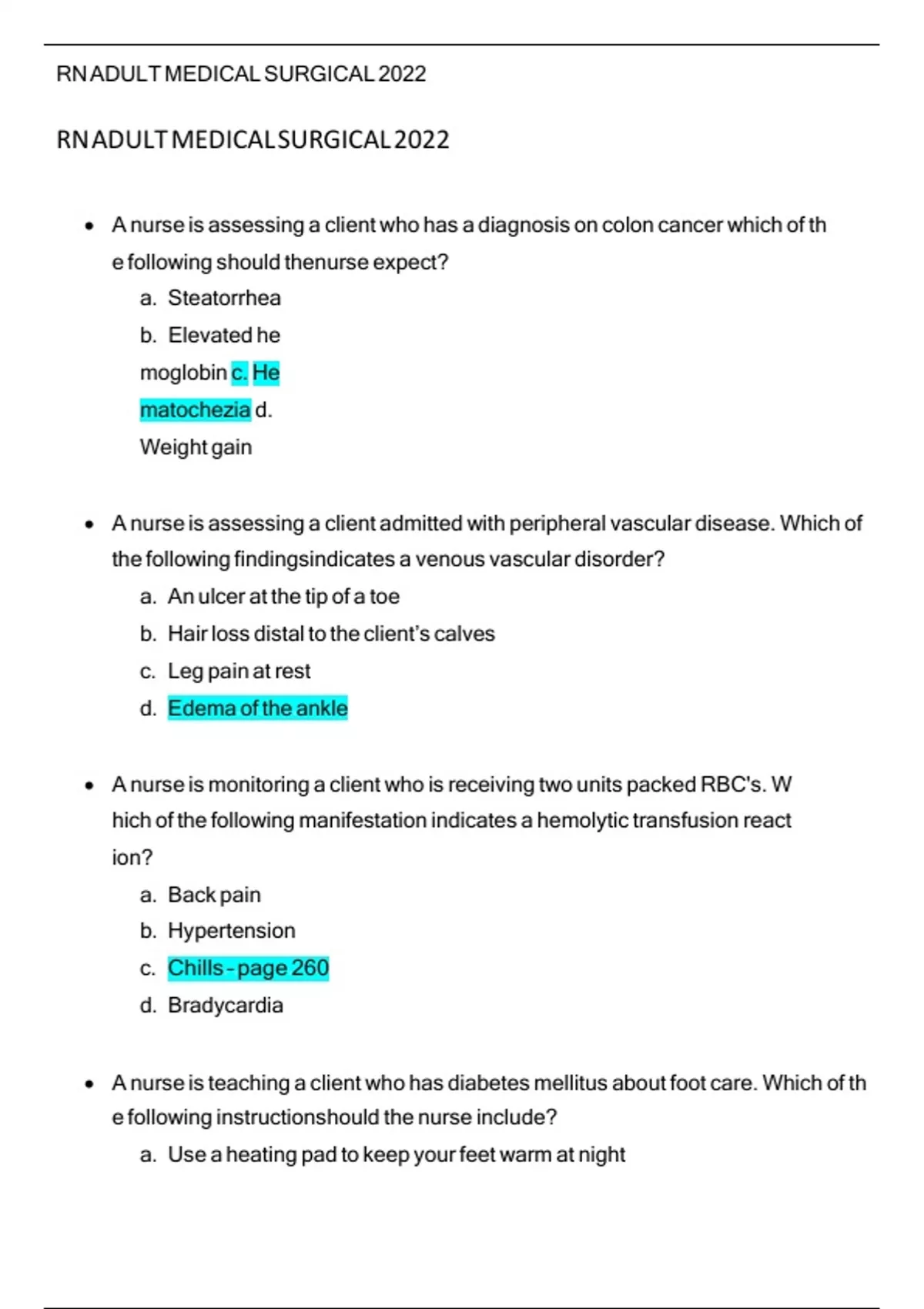  A nurse is assessing a client who has a diagnosis on colon cancer which of th