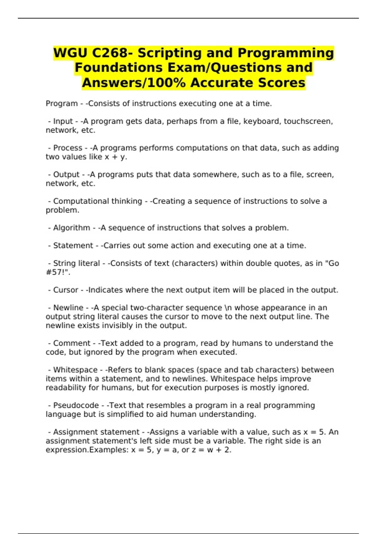 WGU C268- Scripting and Programming Foundations Exam/Questions and Answers/100% Accurate Scores