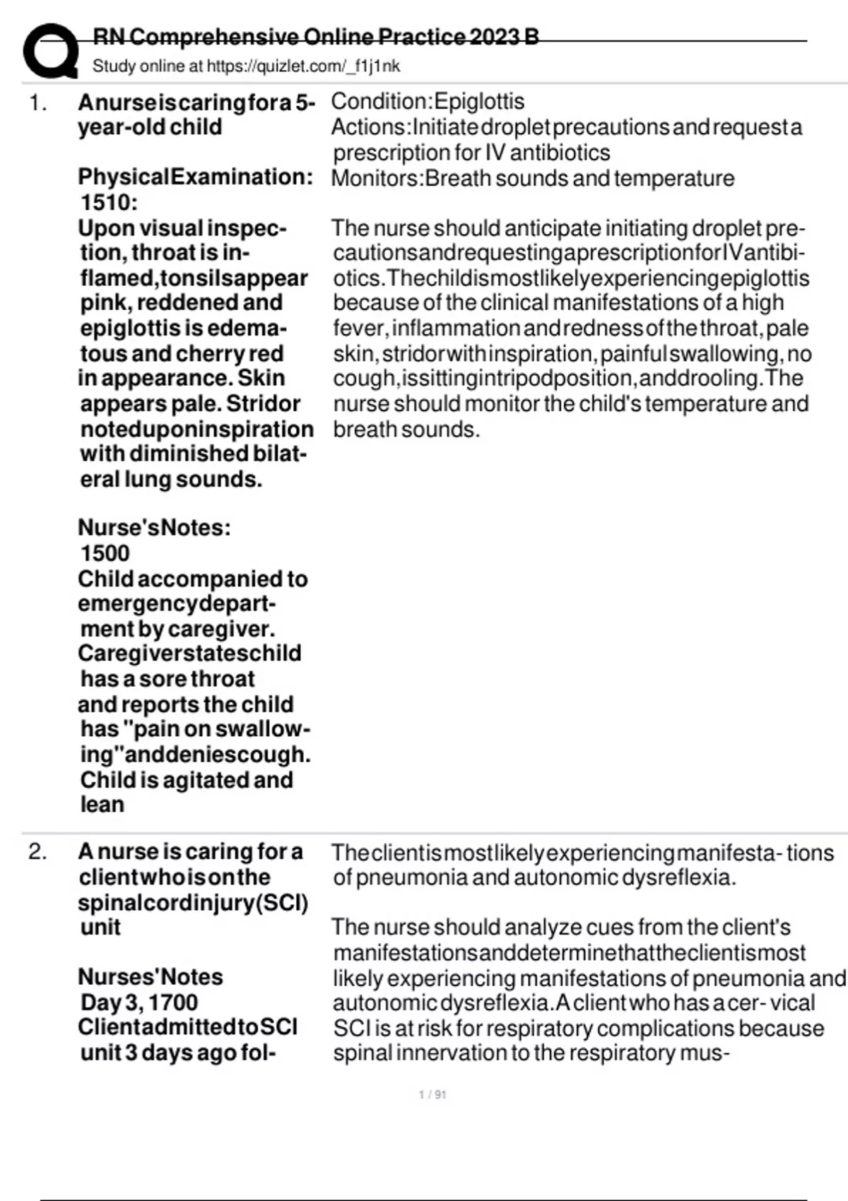 1. A nurse is caring for a 5- Condition: Epiglottis