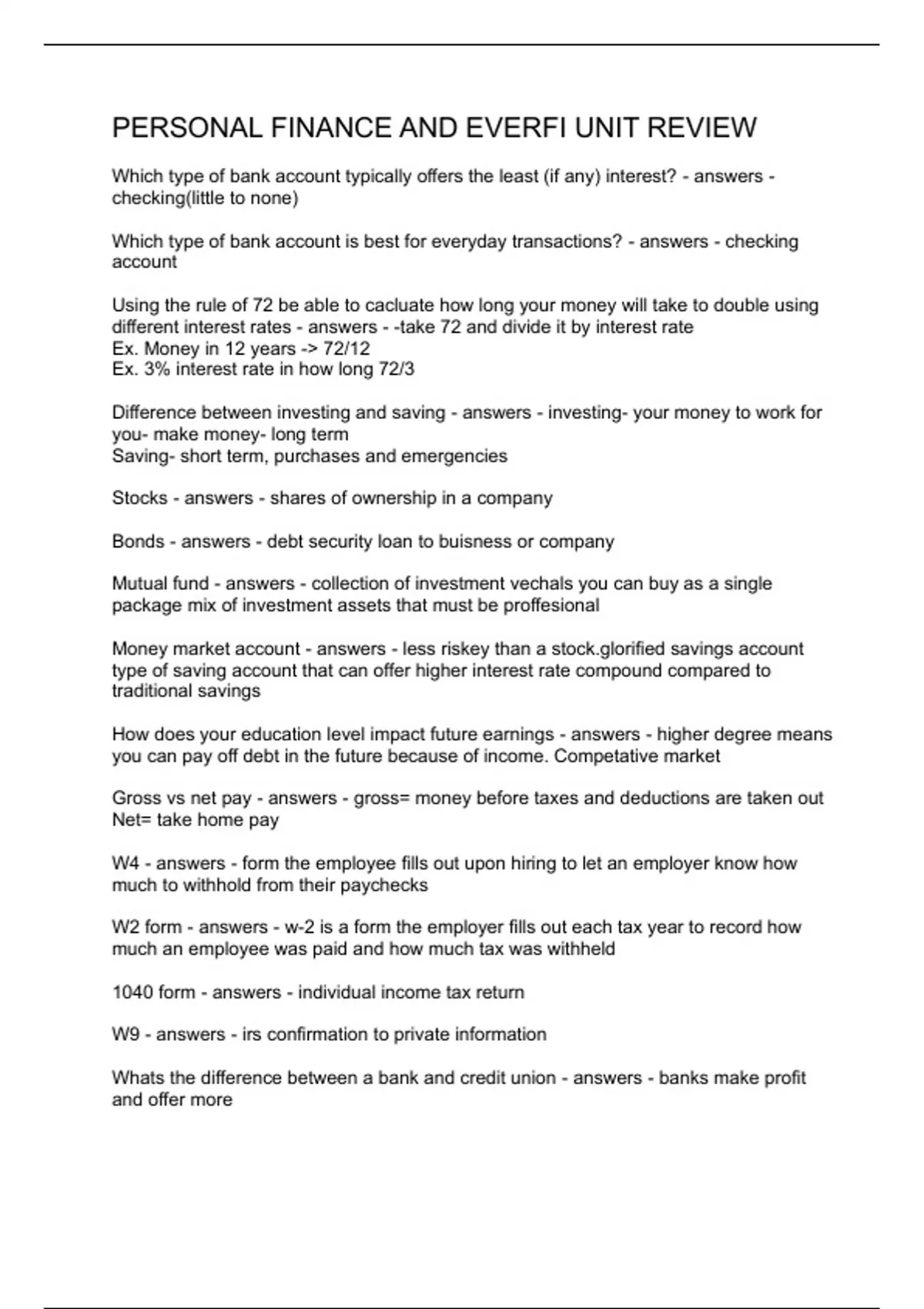 PERSONAL FINANCE AND EVERFI UNIT REVIEW
