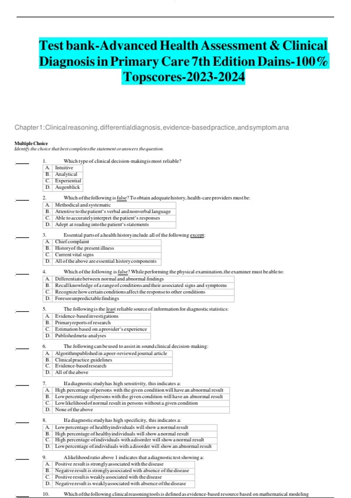 Test bank-Advanced Health Assessment & Clinical