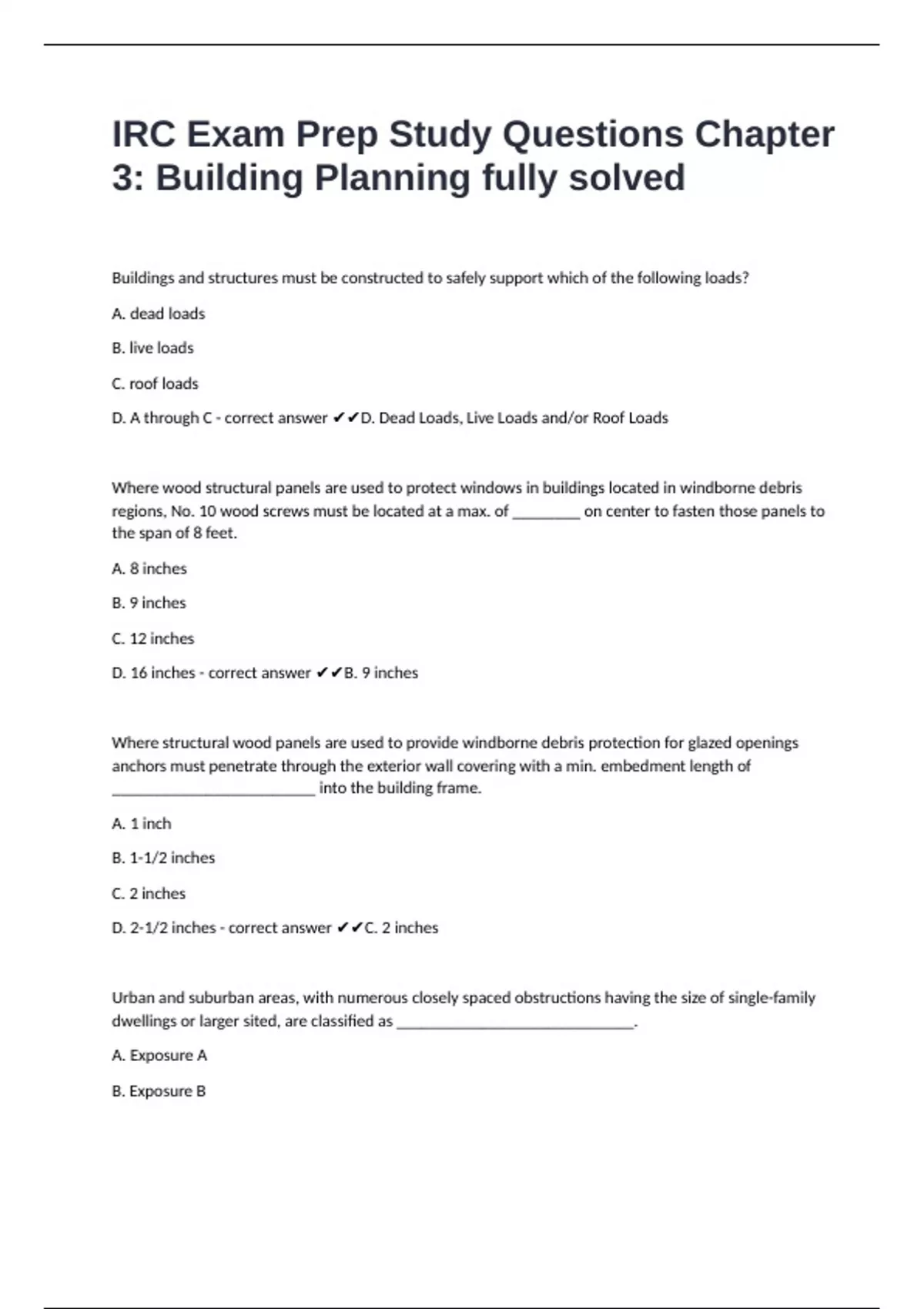 D. A through C - correct answer ✔✔D. Dead Loads, Live Loads and/or Roof Loads