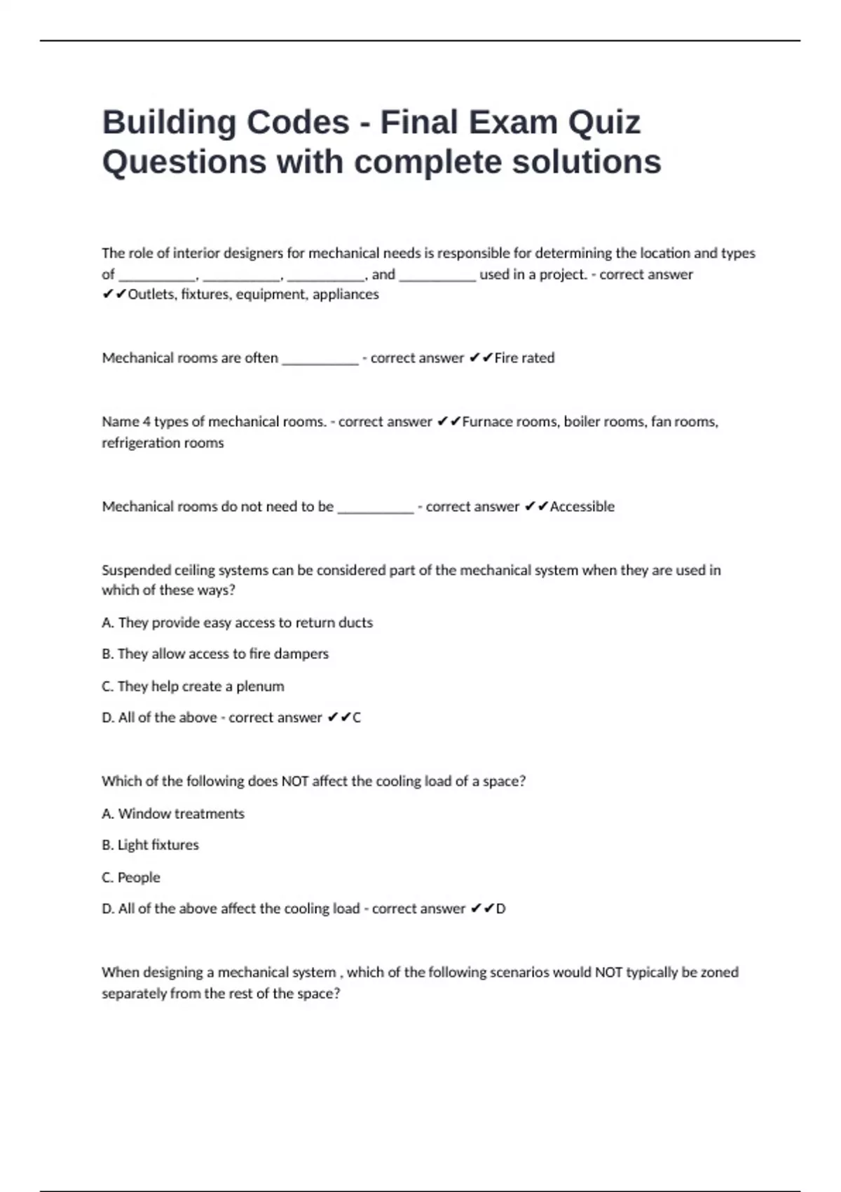Mechanical rooms are often __________ - correct answer ✔✔Fire rated