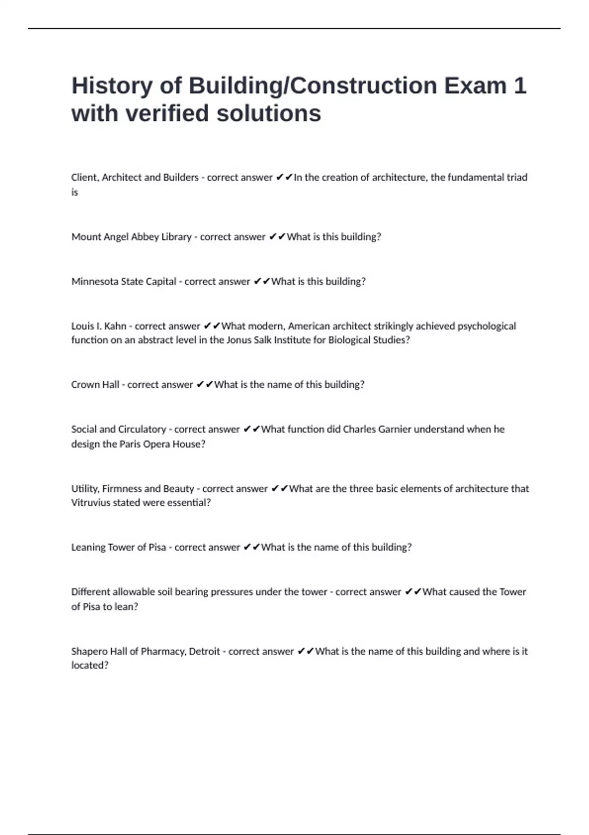 Leaning Tower of Pisa - correct answer ✔✔What is the name of this building?
