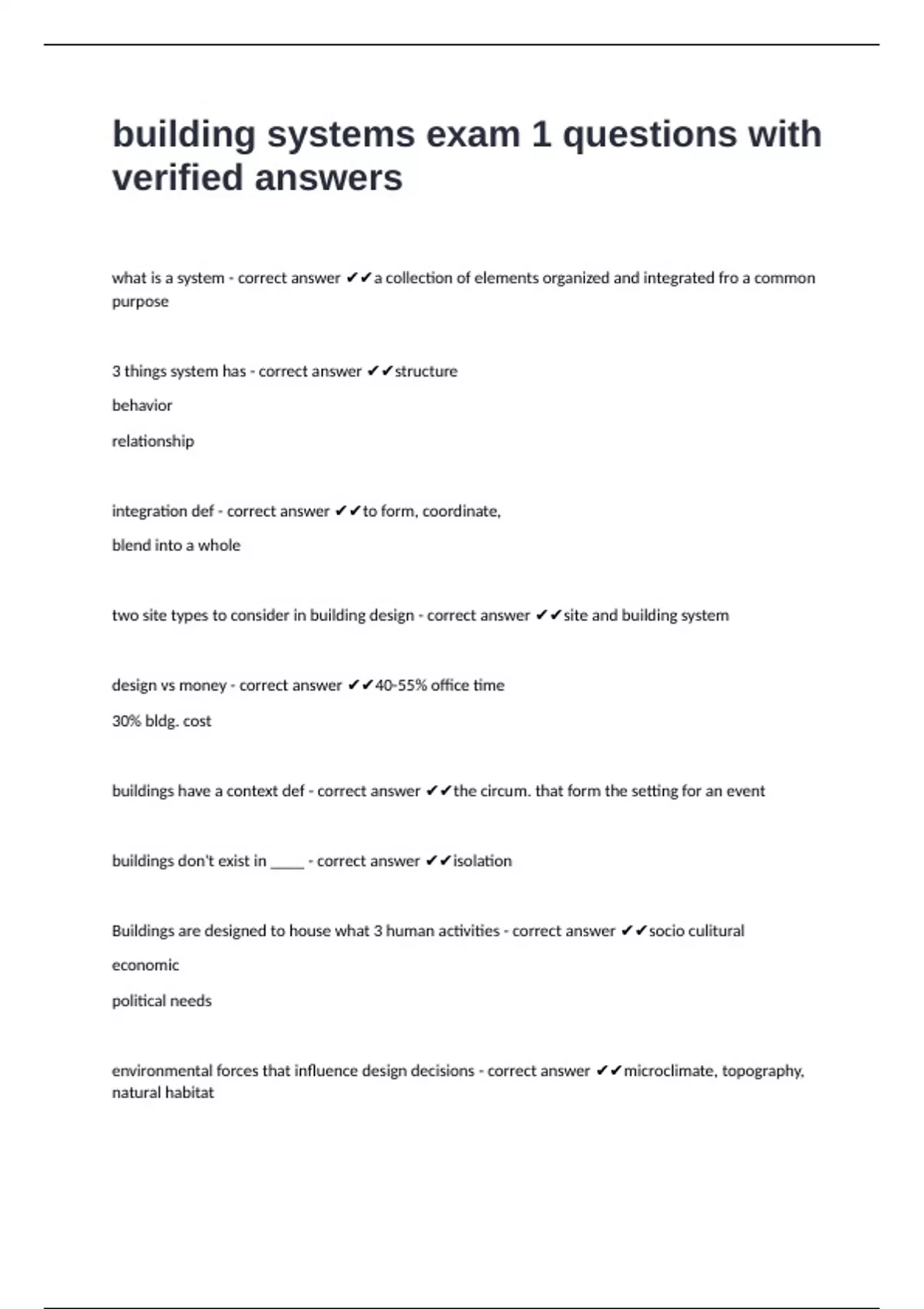 Buildings are designed to house what 3 human activities - correct answer ✔✔socio culitural