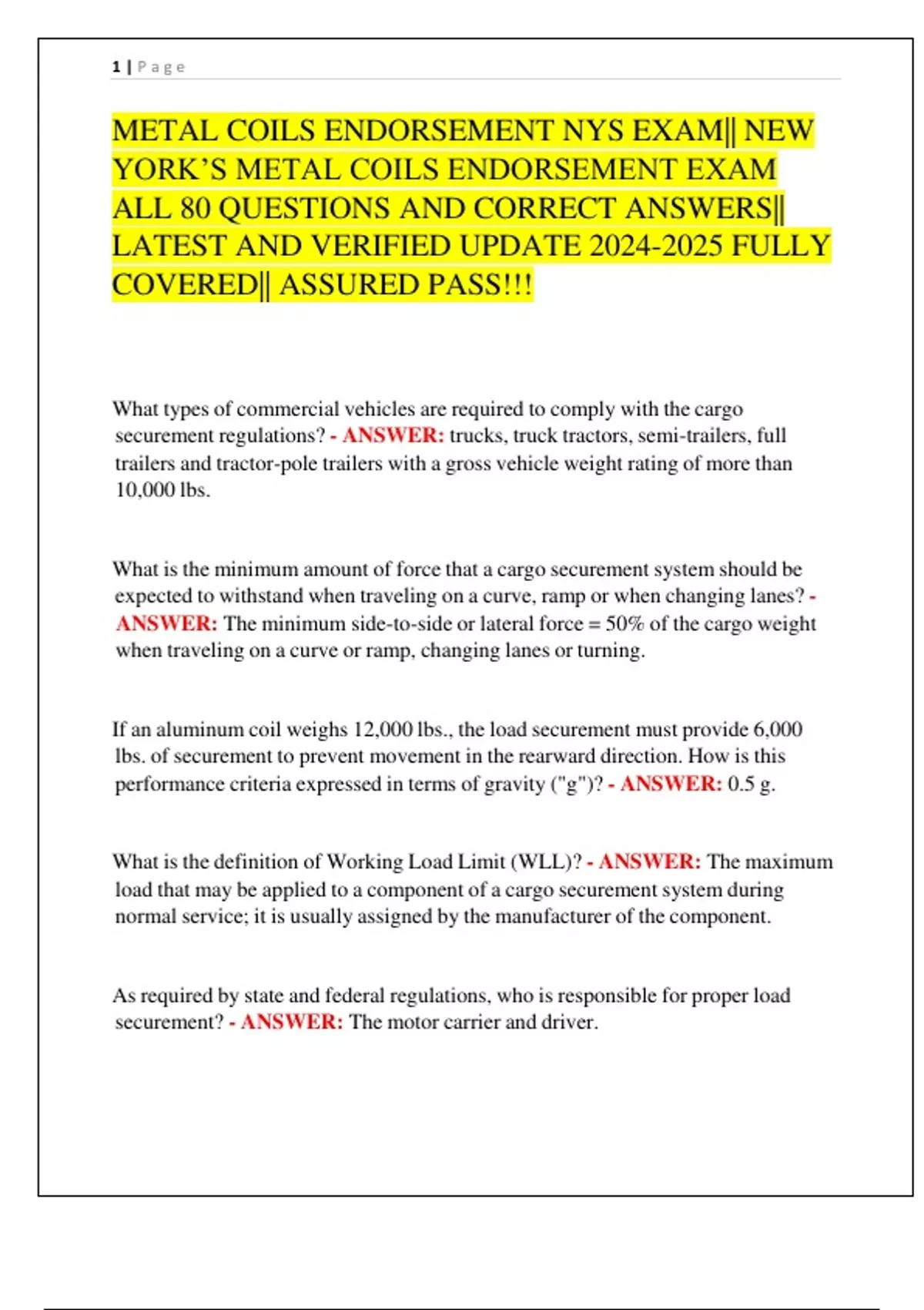 METAL COILS ENDORSEMENT NYS EXAM|| NEW YORK’S METAL COILS ENDORSEMENT EXAM ALL 80 QUESTIONS AND CORRECT ANSWERS|| LATEST AND VERIFIED UPDATE FULLY COVERED|| ASSURED PASS!!!METAL COILS ENDORSEMENT NYS EXAM|| NEW YORK’S METAL COILS ENDORSEMENT EXAM ALL 80 QUESTIONS AND CORRECT ANSWERS|| LATEST AND VERIFIED UPDATE FULLY COVERED|| ASSURED PASS!!!METAL COILS ENDORSEMENT NYS EXAM|| NEW YORK’S METAL COILS ENDORSEMENT EXAM ALL 80 QUESTIONS AND CORRECT ANSWERS|| LATEST AND VERIFIED UPDATE FULLY COVERED|| ASSURED PASS!!!METAL COILS ENDORSEMENT NYS EXAM|| NEW YORK’S METAL COILS ENDORSEMENT EXAM ALL 80 QUESTIONS AND CORRECT ANSWERS|| LATEST AND VERIFIED UPDATE FULLY COVERED|| ASSURED PASS!!!METAL COILS ENDORSEMENT NYS EXAM|| NEW YORK’S METAL COILS ENDORSEMENT EXAM ALL 80 QUESTIONS AND CORRECT ANSWERS|| LATEST AND VERIFIED UPDATE FULLY COVERED|| ASSURED PASS!!!METAL COILS ENDORSEMENT NYS EXAM|| NEW YORK’S METAL COILS ENDORSEMENT EXAM ALL 80 QUESTIONS AND CORRECT ANSWERS|| LATEST AND VERIFIED UPDATE FULLY COVERED|| ASSURED PASS!!!METAL COILS ENDORSEMENT NYS EXAM|| NEW YORK’S METAL COILS ENDORSEMENT EXAM ALL 80 QUESTIONS AND CORRECT ANSWERS|| LATEST AND VERIFIED UPDATE FULLY COVERED|| ASSURED PASS!!!