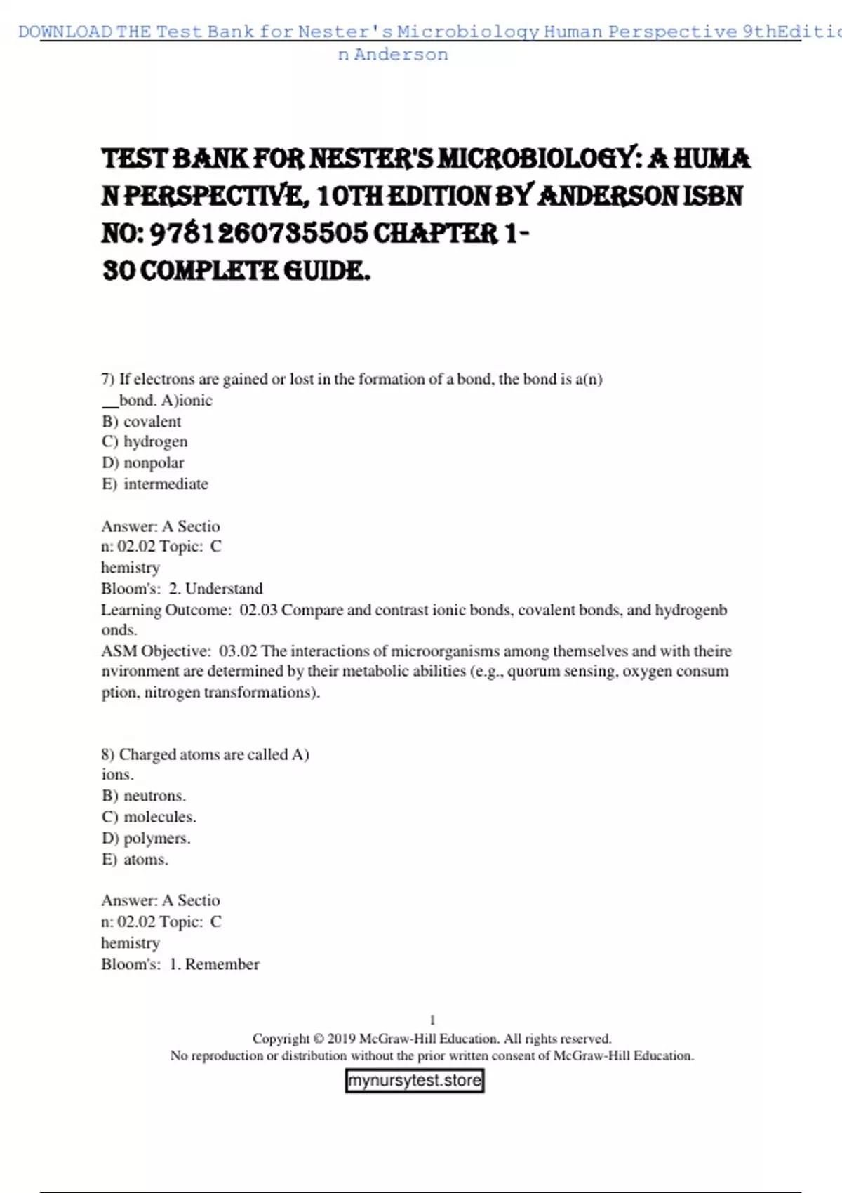 , DOWNLOAD THE Test Bank for Nester's Microbiology Human Perspective 9thEditio
