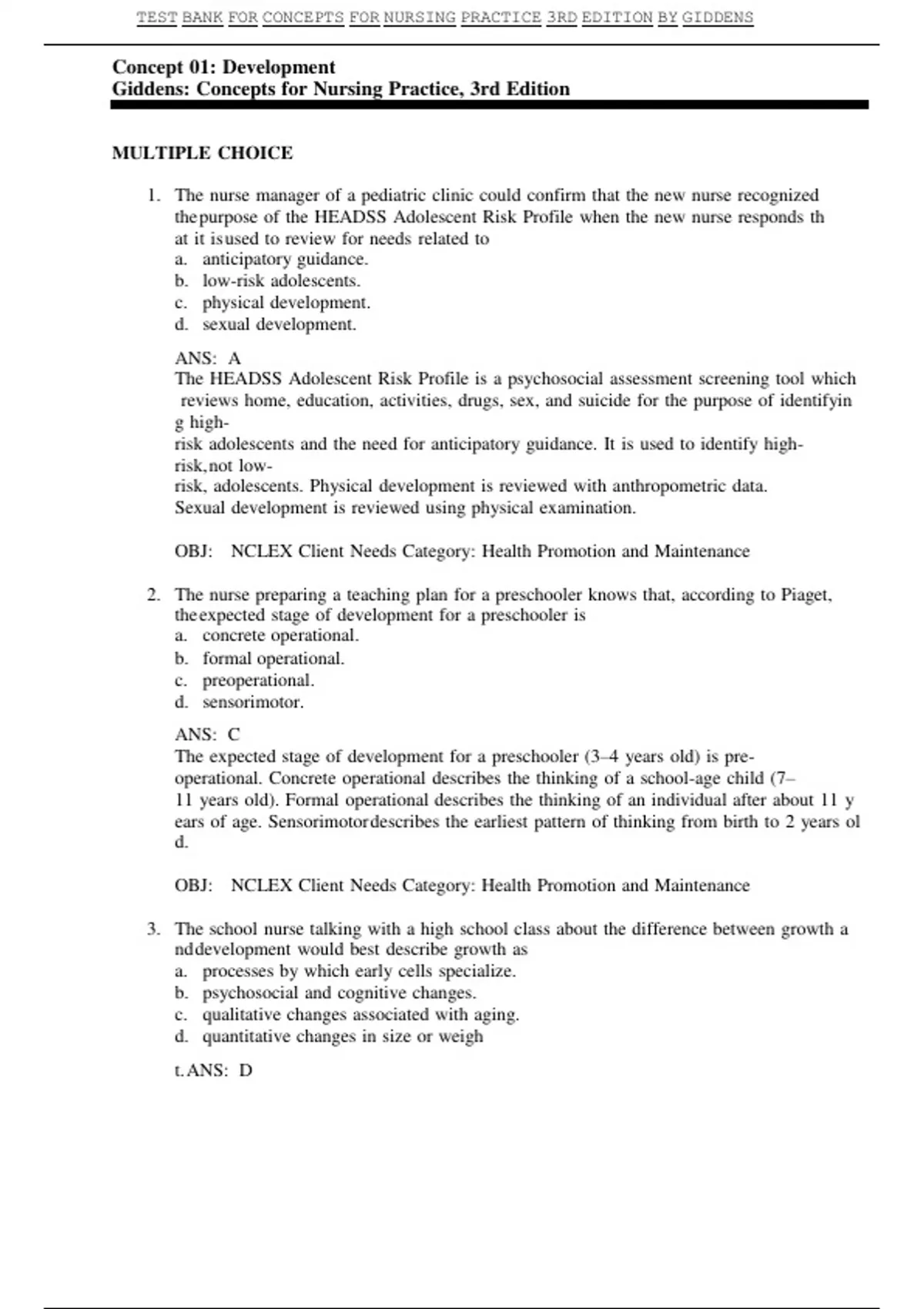 , TESTmBANKmFORmCONCEPTSmFORmNURSINGmPRACTICEm3RDmEDITIONmBYmGIDDENS