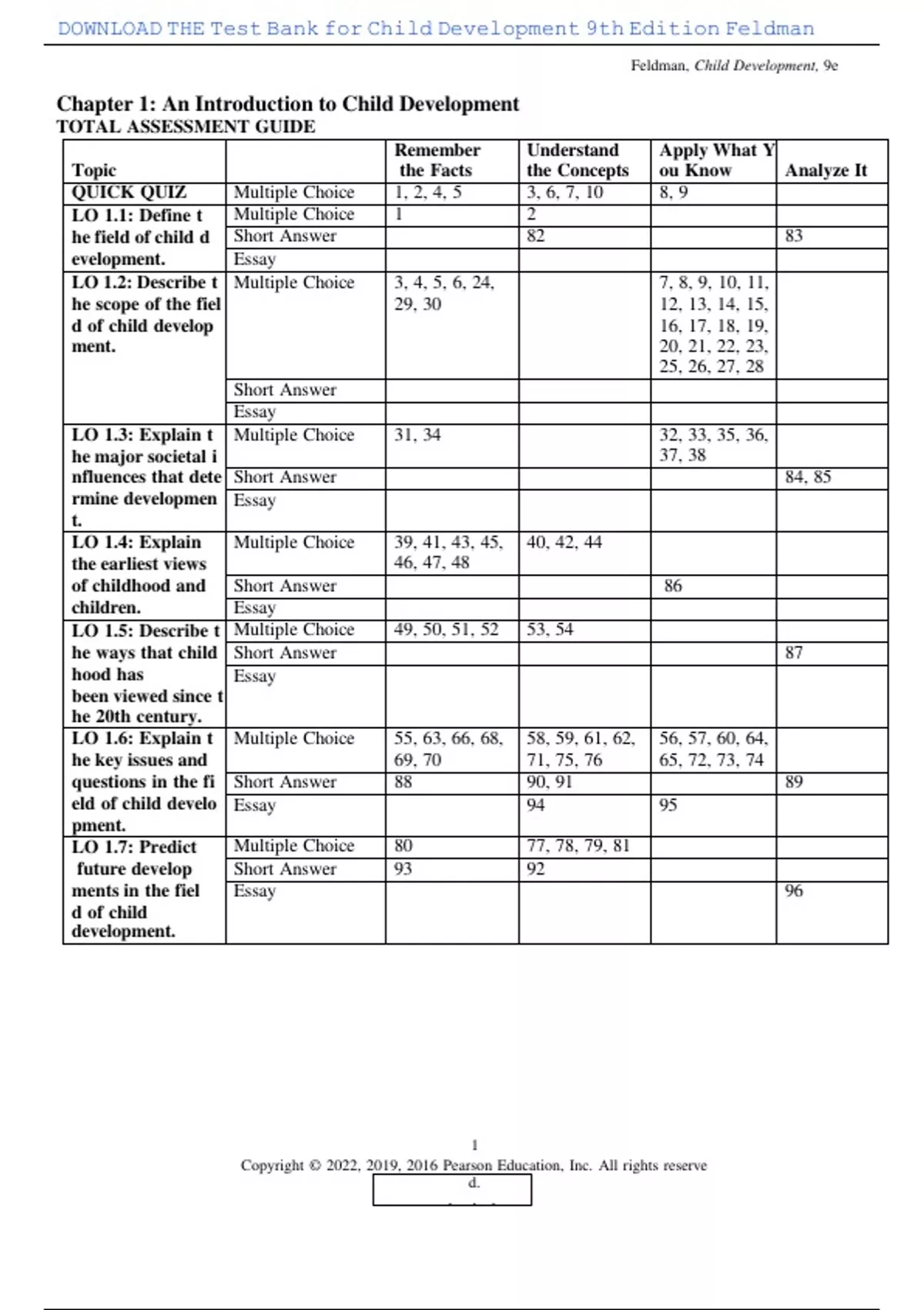 , DOWNLOAD THE Test Bank for Child Development 9th Edition Feldman