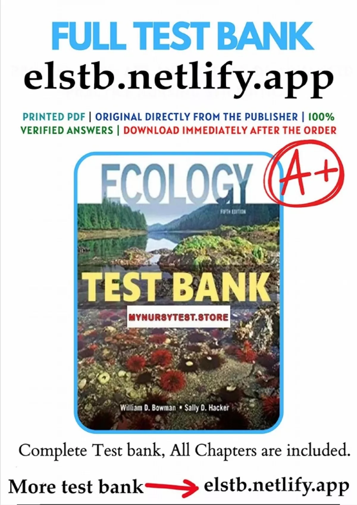, DOWNLOAD THE Test Bank for Ecology 5th Edition Bowman