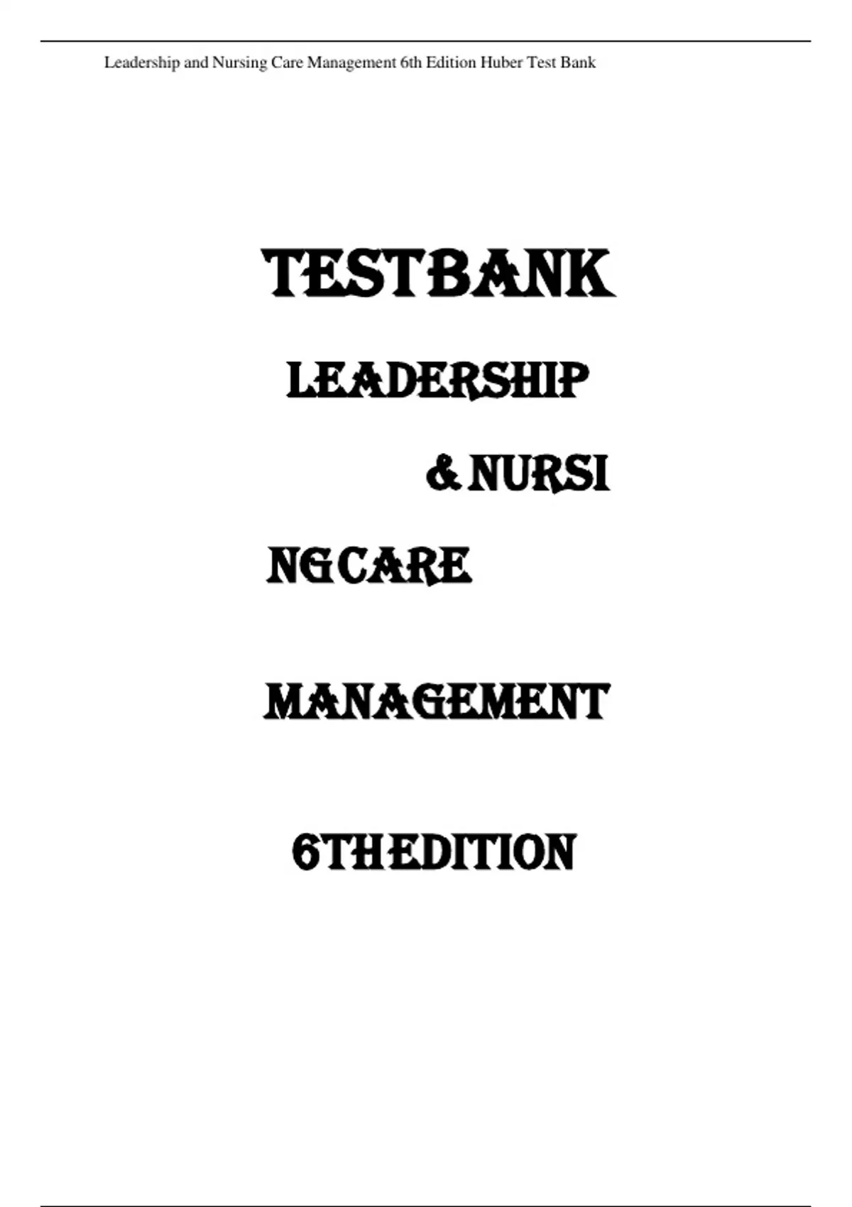 , LeadershipnandnNursingnCarenManagementn6thnEditionnHubernTestnBank