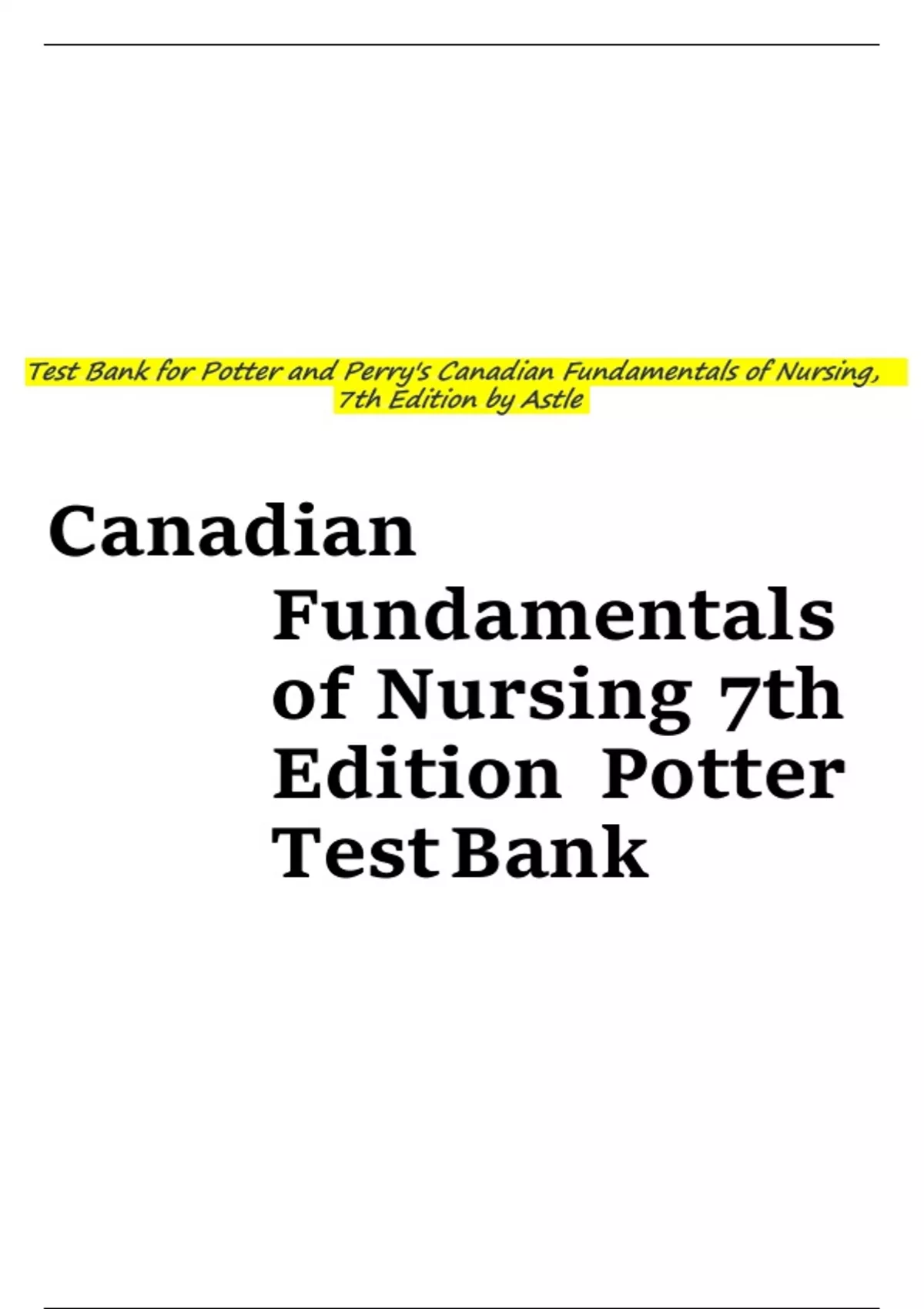 , Canadian nFundamentals nof nNursing n7th nEdition nPotter nTest