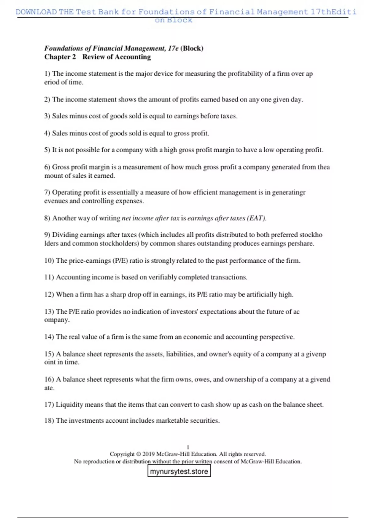 , DOWNLOAD THE Test Bank for Foundations of Financial Management 17thEditi