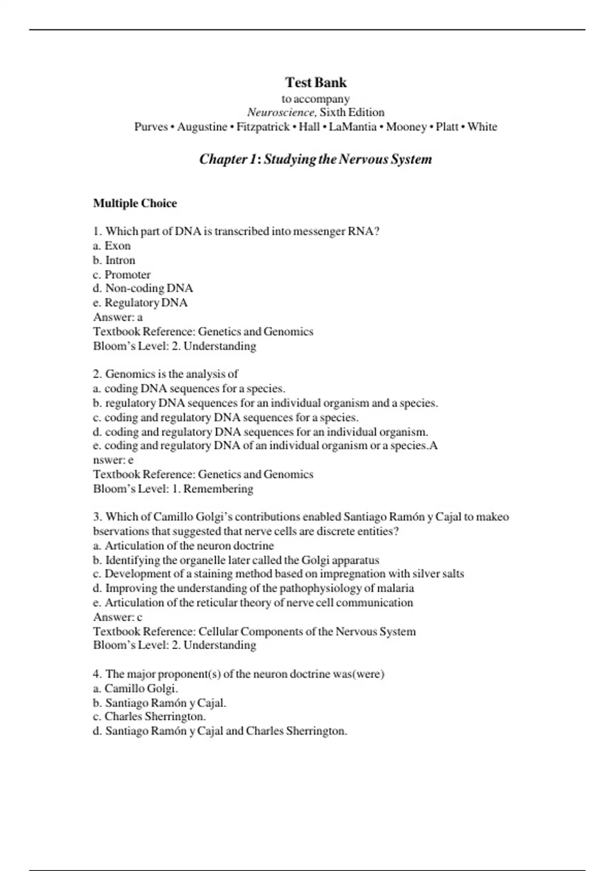 Neuroscience 6th edition purves test bank
