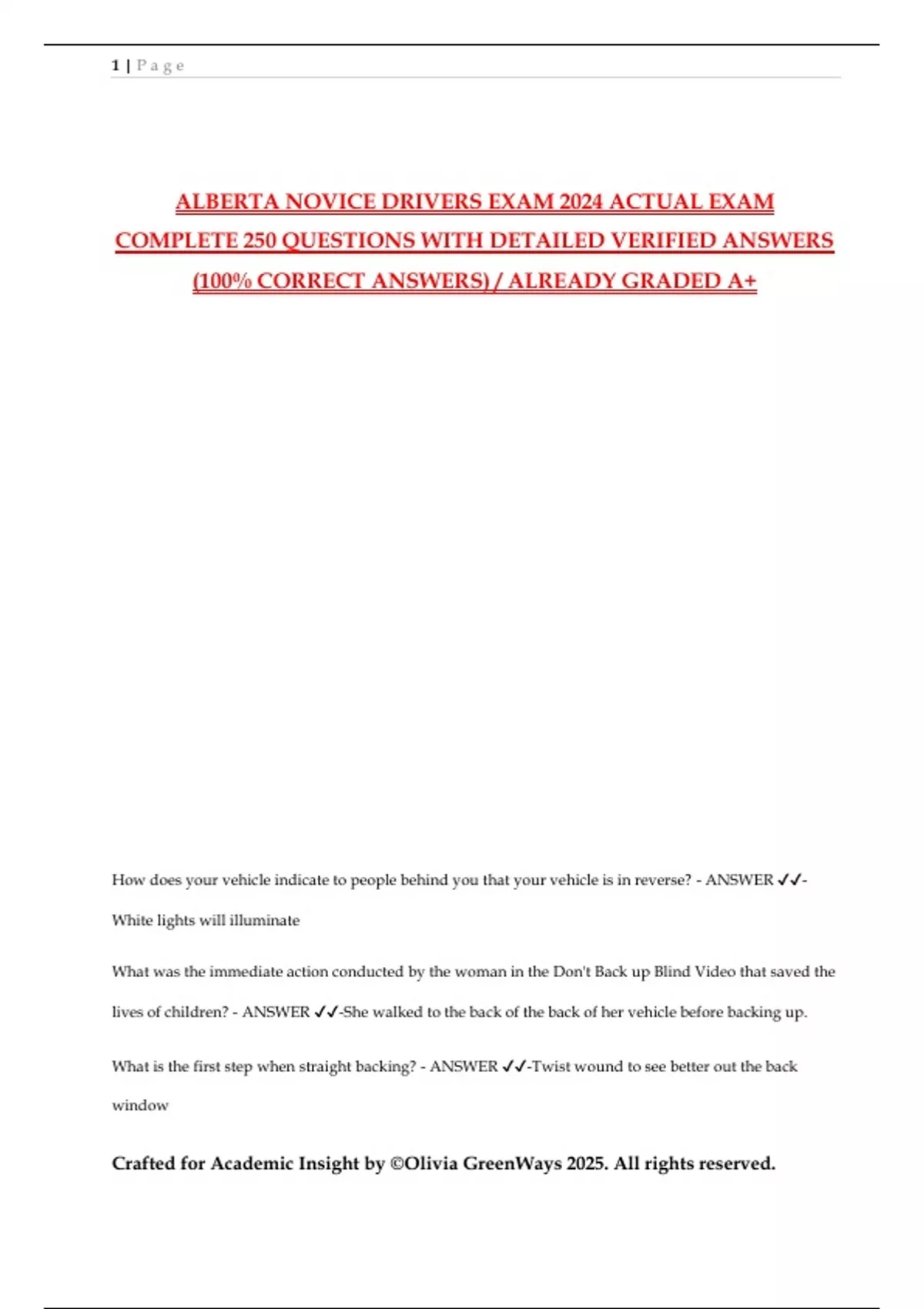 ALBERTA NOVICE DRIVERS EXAM 2024 ACTUAL EXAM