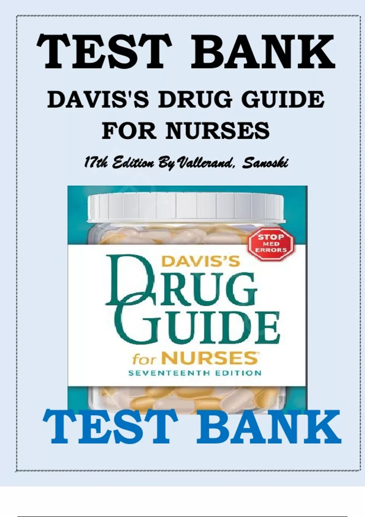 ,Davis’s Drug Guide for Nurses, 17 Edition Vallerand. Sanoski Test Bank