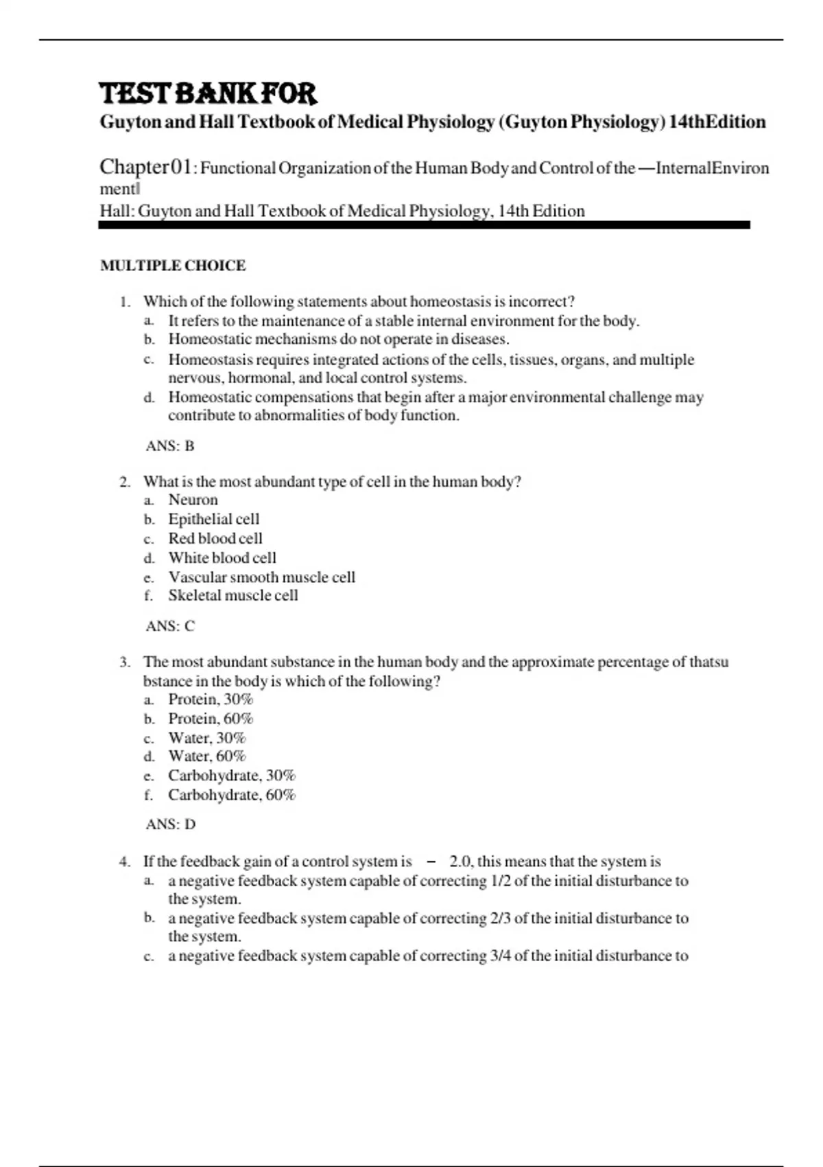 Chapter 01: Functional Organization of the Human Body and Control of the ―InternalEnviron