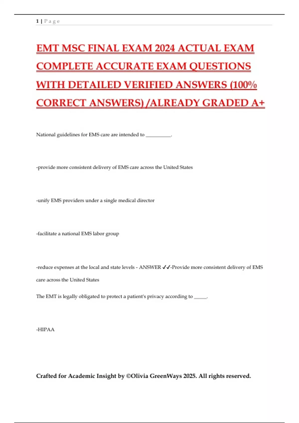 EMT MSC FINAL EXAM 2024 ACTUAL EXAM