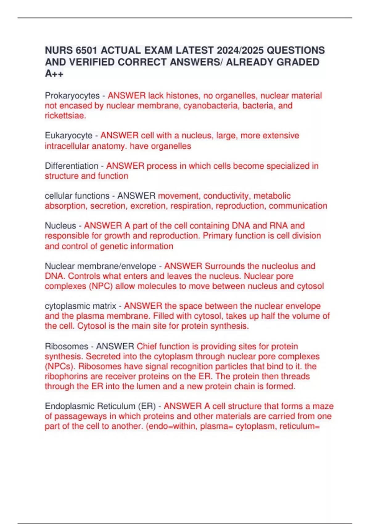 Eukaryocyte - ANSWER cell with a nucleus, large, more extensive
