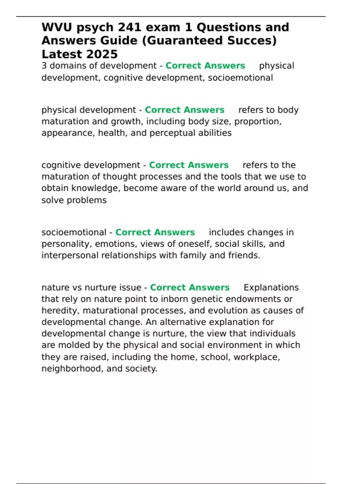 3 domains of development - Correct Answers ✅physical