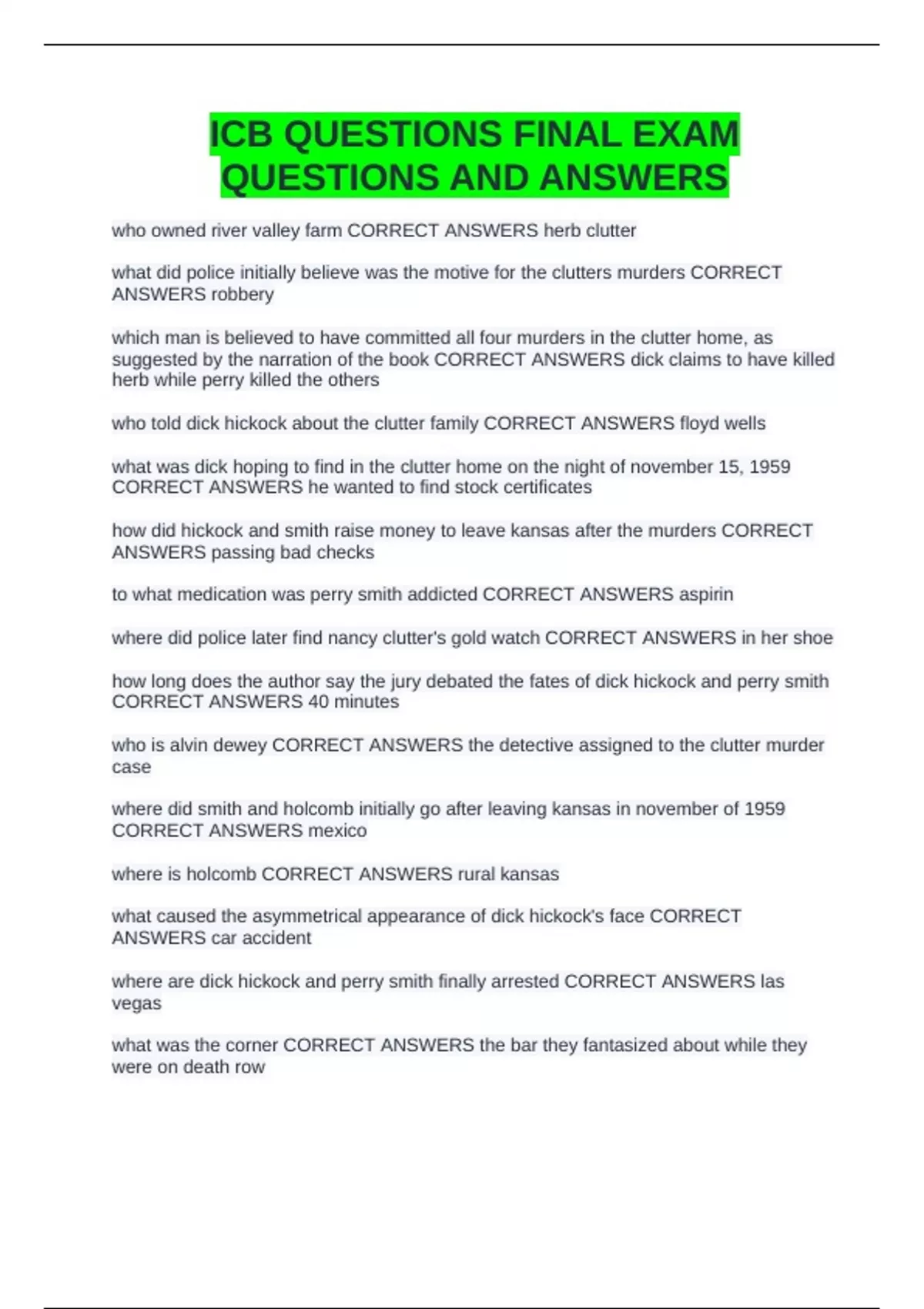 CORRECT ANSWERS 40 minutes