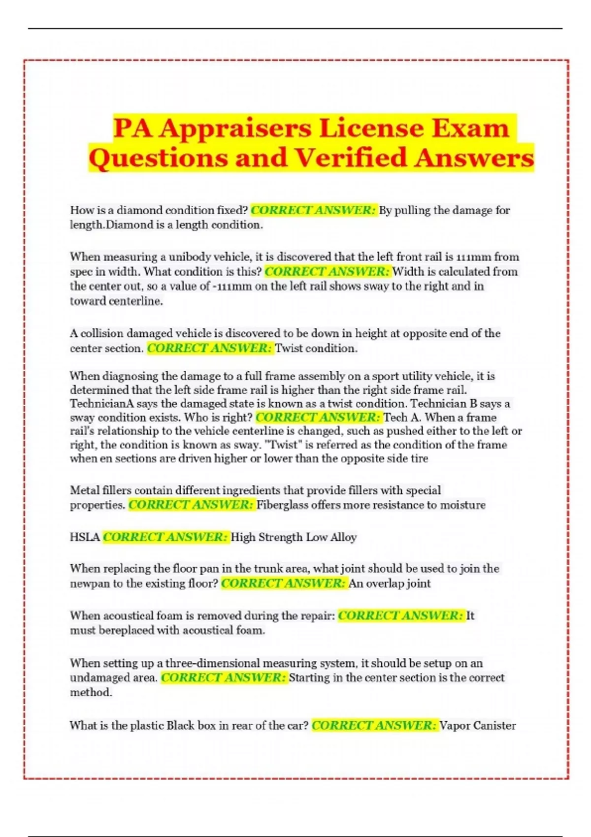 PA Appraisers License Exam Questions and Verified Answers