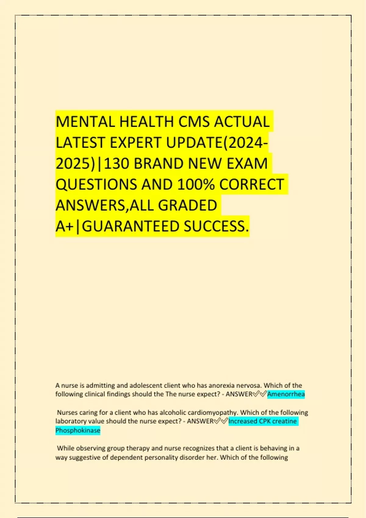 , behaviors is consistent with this condition? - ANSWER✅✅The client needs excessive