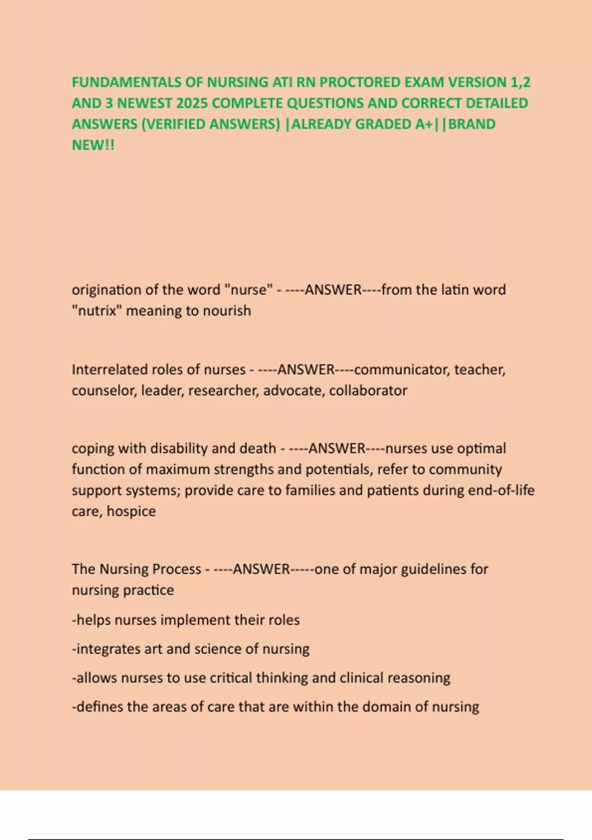 FUNDAMENTALS OF NURSING ATI RN PROCTORED EXAM VERSION 1,2 AND 3 NEWEST 2025 COMPLETE QUESTIONS AND CORRECT DETAILED ANSWERS (VERIFIED ANSWERS) |ALREADY GRADED A+||BRAND NEW!!