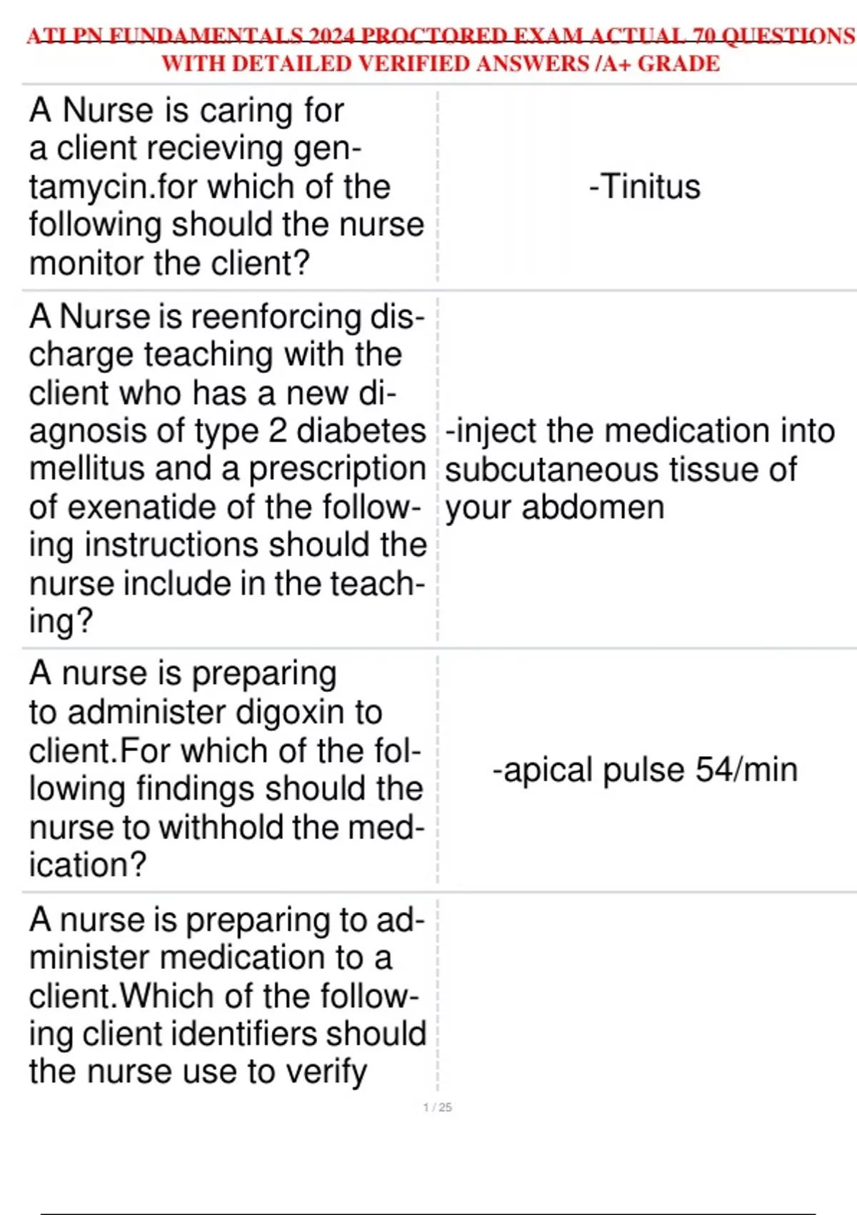 , ATI PN FUNDAMENTALS 2024 PROCTORED EXAM ACTUAL 70 QUESTIONS
