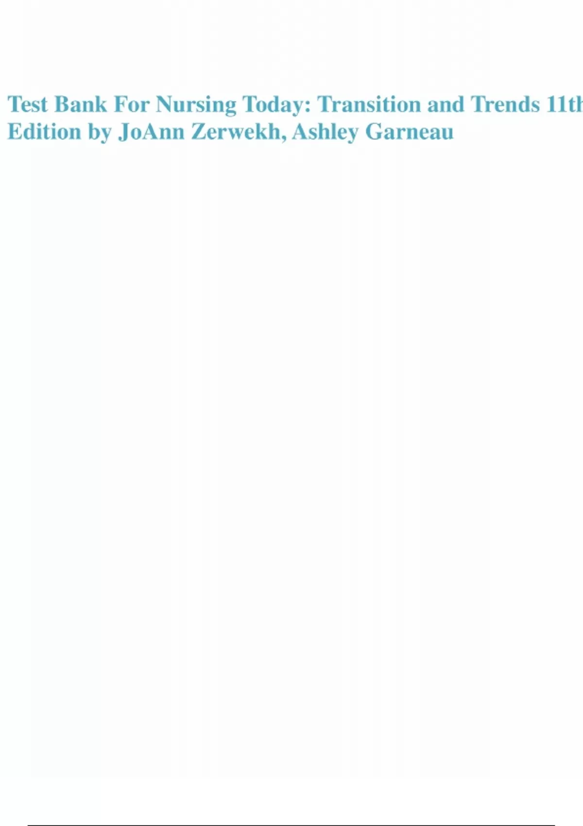 Test Bank For Nursing Today: Transition and Trends 11th Edition by JoAnn Zerwekh, Ashley Garneau