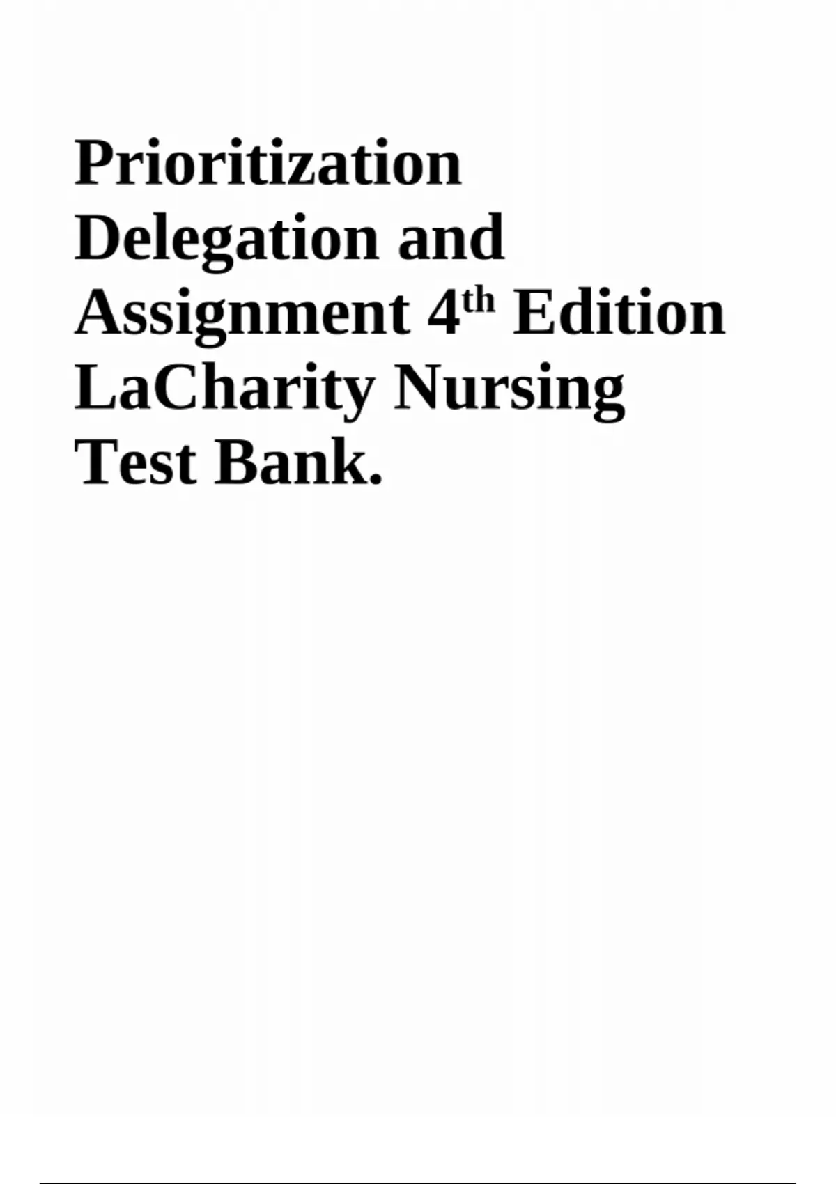 Test Bank For Prioritization, Delegation, and Assignment, 4th Edition, Practice Exercises for the NCLEX Examination Updated, All Chapters 1-22