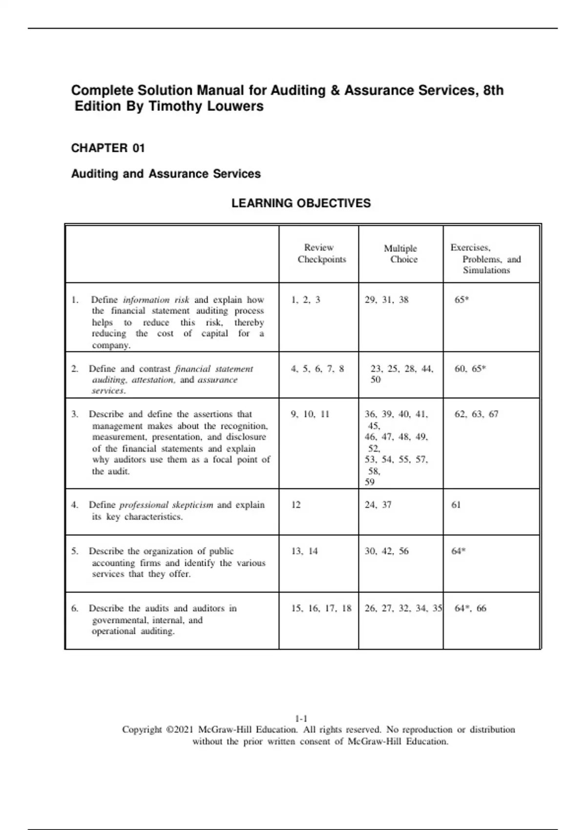 Complete Solution Manual For Auditing & Assurance Services, 8th Edition By Timothy Louwers