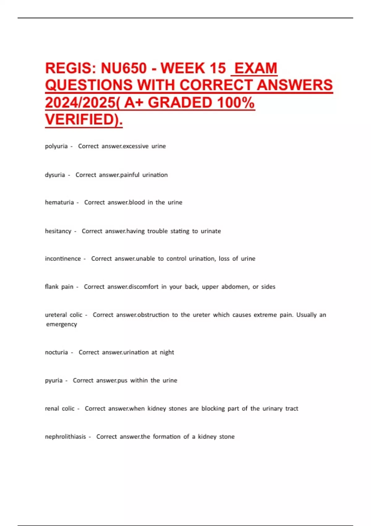 REGIS: NU650 - WEEK 15 EXAM